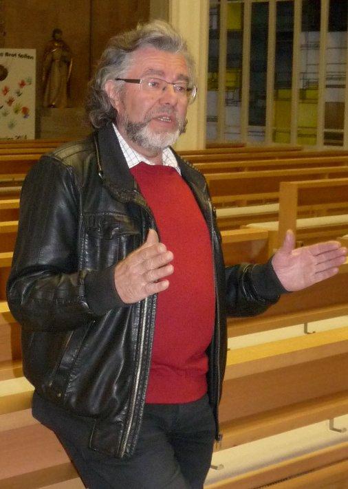 Die Kolpingsfamilie Eislingen hatte sich zum Beten des Kreuzweges in der Liebfrauenkirche versammelt und Glasmalermeister Erich Funk sprach bei dieser Gelegenheit über die Entstehung und die Gestaltung des Kreuzweges im Glasstudio Funk in Eislingen.