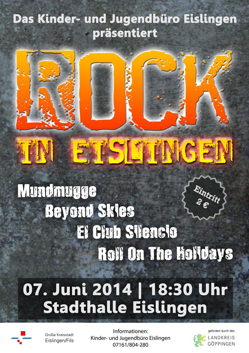 „Rock in Eislingen“ bietet getreu dem Motto „Musikalische Vielfalt einer vielfältigen Jugend“ am 7. Juni 2014 ab 18:30 Uhr vier Stunden Live-Musik zum Tanzen, Schreien und Rocken! Unterstützt wird die Veranstaltung von der DPSG Salach