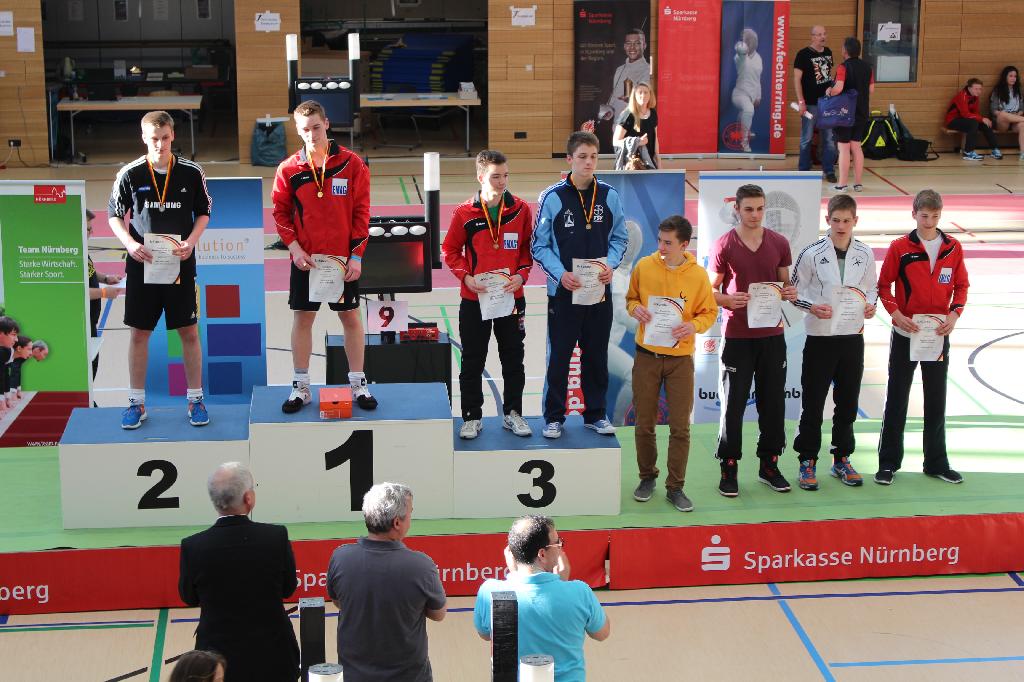 (Nürnberg) Bei den Deutschen A-Jugendmeisterschaften am 24./25.05.2014 geht bei den Männern kein Weg vorbei an den Fechtern der TSG-Eislingen. Simon Rapp wird Deutscher A-Jugendmeister im Einzel, Thomas Schaich von der TSG holt Bronze und Vereinskamerad Frederic Kindler wird Achter. Weitere gute Platzierungen der TSG-Fechter im Einzel folgen. Darüber hinaus wird die TSG-Mannschaft in der Besetzung Rapp, Schaich, Joschka Franz-Gerstein und Adrian Degen tags darauf Deutscher Vizemeister und unterliegt erst im Finale der Startgemeinschaft aus Koblenz mit 45:39.