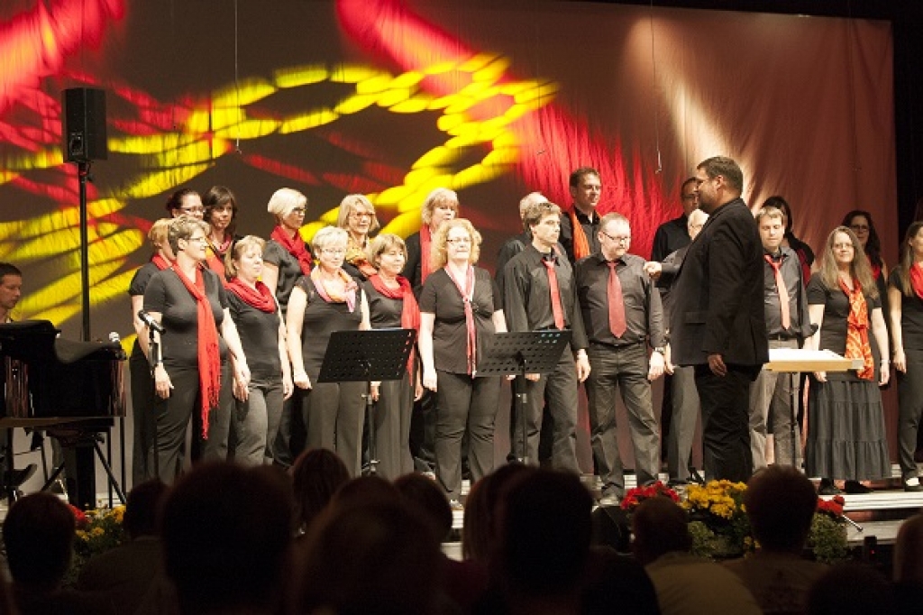 'Ring of Fire' von Jonny Cash und 'Set Fire to the Rain' von Adele durften im Programm des Chores, der vertretungsweise von Peter Joas dirigiert wurde, nicht fehlen. Die Sängerinnen und Sänger traten in Schwarz mit roten Accessoires auf, und die Lightshow tat das Ihrige für einen beeindruckenden Auftritt.
