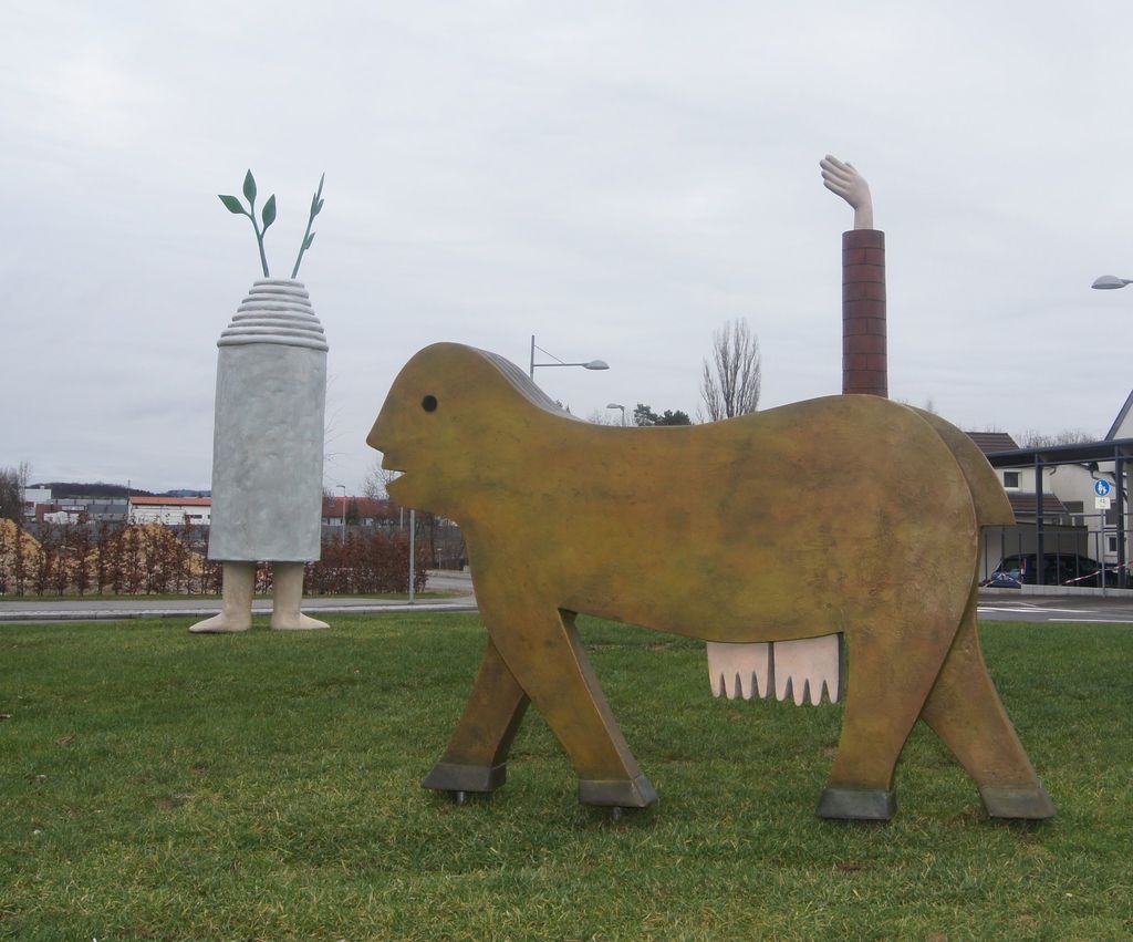 Drei Abbilde dieser Kleinskulpturen sind in dem Kreisel an der Abzweigung Osttangente als Eislinger Kreiselkunst aufgestellt.