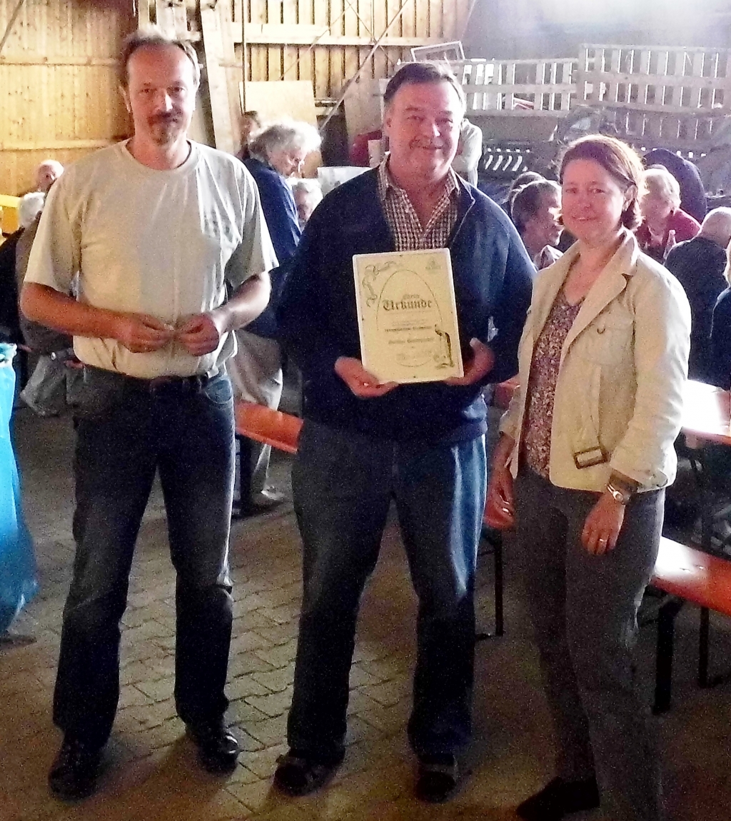Ausführlich streifte der Vorstand den Besuch unsere Freunde aus dem ungarischen Villany, welche uns traditionsgemäß dieses Jahr an Pfingsten besuchten. Er streifte die Aktionstage mit den vielen Züchterbesuchen im Umland des Stauferlandes und manches wertvolle Zuchttier wechselte von Deutschland nach Ungarn und umgekehrt. Freundschaften wurden geschlossen oder vertieft, es ist immer wieder ein gelungenes Fest, wenn der durch den damaligen „gyuri bacsi „ , unser Ehrenmitglied Georg Weidinger hergestellter Kontakt nun zum 18. Mal in einem Treffen zustande kam. Eine offizielle Ehrenurkunde der Gemeinde Villany wurde dem Verein feierlich überreicht.
