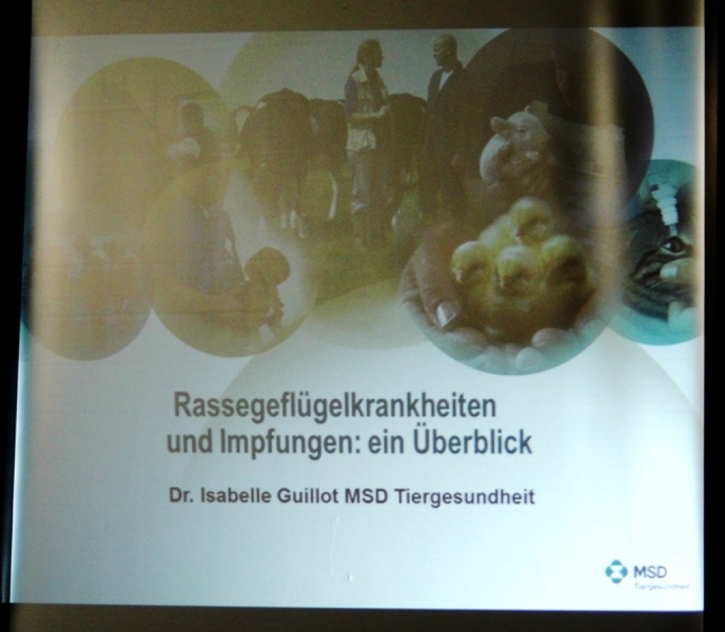 Am Vormittag, wie immer dem aktiven, züchterischen Teil unseres Hobbys der Rassegeflügelzucht, der Themavielfalt über die Tauben- und Zwerghuhnzucht gewidmet, hatten wir als Referentin Frau Dr. Guillot von der Firma MSD eingeladen, welche uns in einem sehr lehrreichen und interessanten Vortag das wichtige Thema Impfungen beim Rassegeflügel vortrug und bei den daraus entstehenden Fragen zur Vorsorge und Impfpflicht kamen natürlich sehr positive Diskussionen zustande, welche die Zeit bis zum Mittagessen schnell kurzweilig für die Anwesenden werden ließ, denn so einen Vortrag einer kompetentem Fachfrau hört man nicht alle Tage, wofür sich der Verein herzlich bedankte.
