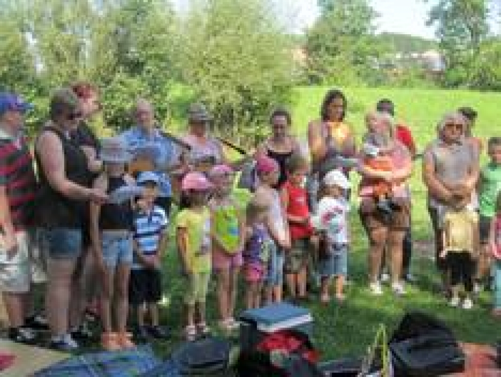 Der Ausschuss 'Kindergarten' hat zu einem Grillfest eingeladen. Bei herrlichem Wetter mit viel Sonnenschein führte der Weg zu Fuß zum Waldspielplatz mit Grillstellen.