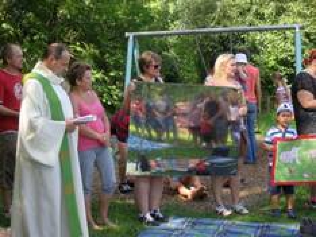 Zum gemeinsamen Grillfest trafen sich bereits um 9.30 Uhr viele Eltern und Großeltern mit kleinen und großen Kindern sowie Mitarbeiterinnen aus dem Kinderhaus St. Michael und dem Kindergarten St. Markus am Samstag, den 19. Juli 2014 an der Sporthalle im Ösch. Von dort ging es zu Fuß in einer langen Schlange auf den Waldspielplatz bei Bärenbach.