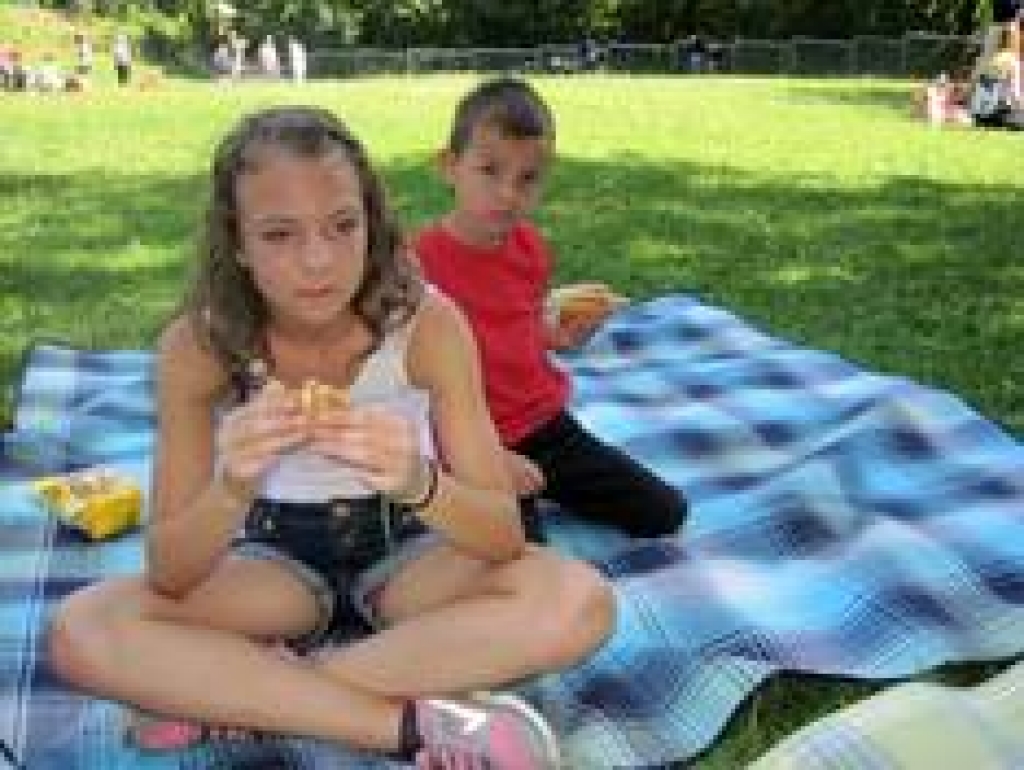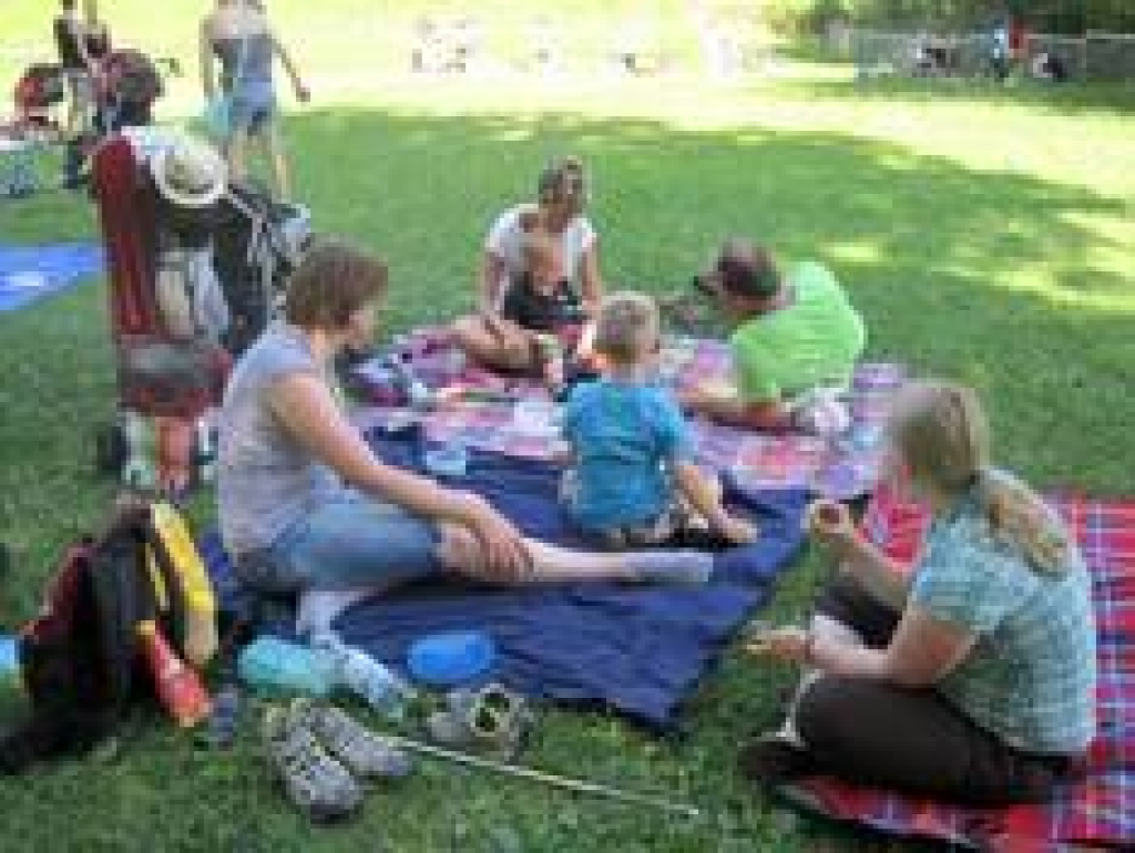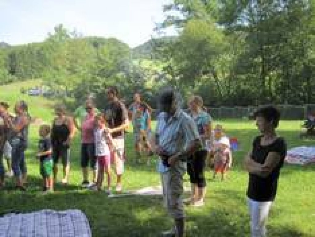 Die Sonne brannte schon kräftig herab und als die bunte Gemeinschaft am Ziel ankam, suchte sich jeder ein schattiges Plätzchen im Gras.