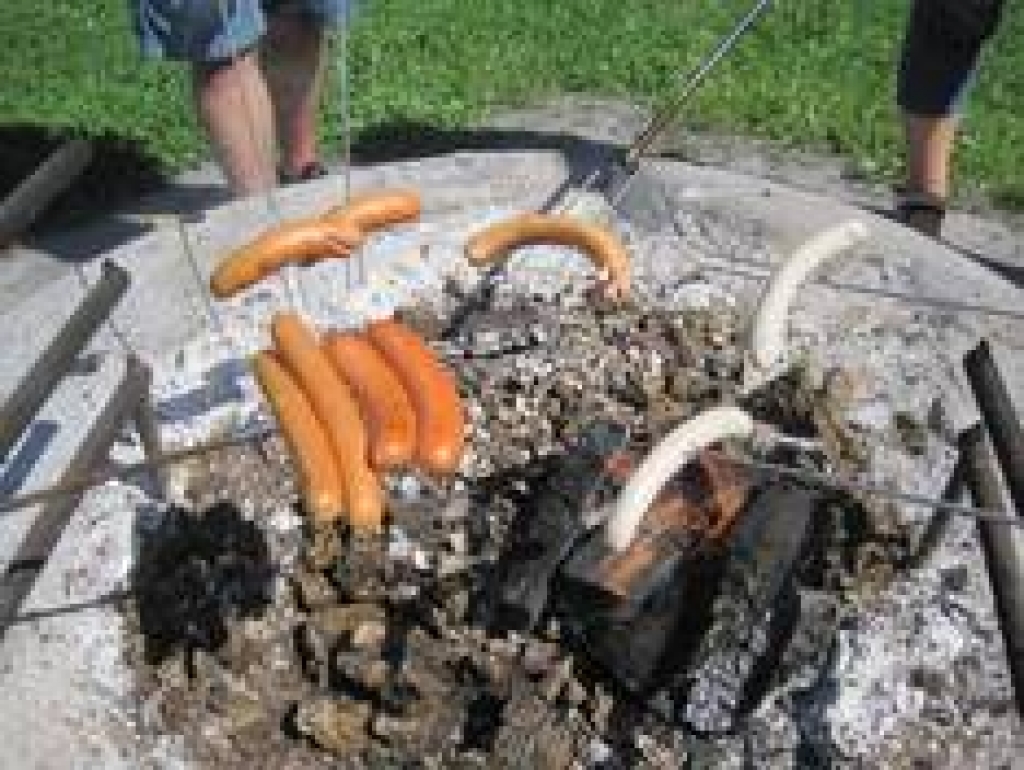 Bei einem Grillfest fehlte natürlich nicht das wichtigste – das braten von Würstchen und Fleisch an den beiden Feuerstellen. Eine fleißige Hand hatte bereits das Feuer eingeheizt, so dass man nur noch einen Grillspieß nehmen musste, die Wurst aufspießen und ab ans Feuer damit. Es schmeckte allen, das konnte man deutlich sehen.