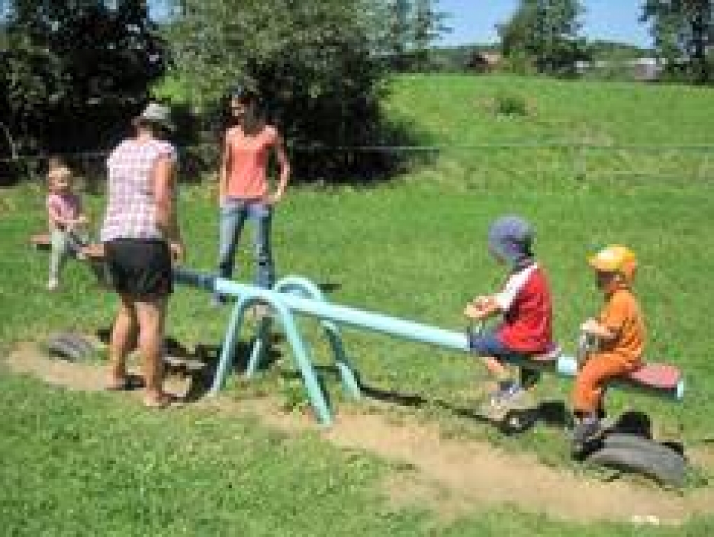 Auf dem Spielplatz gab es einige Spielgeräte, so dass es den Kindern nicht langweilig wurde und die Erwachsenen hatten Zeit für Gespräche.
