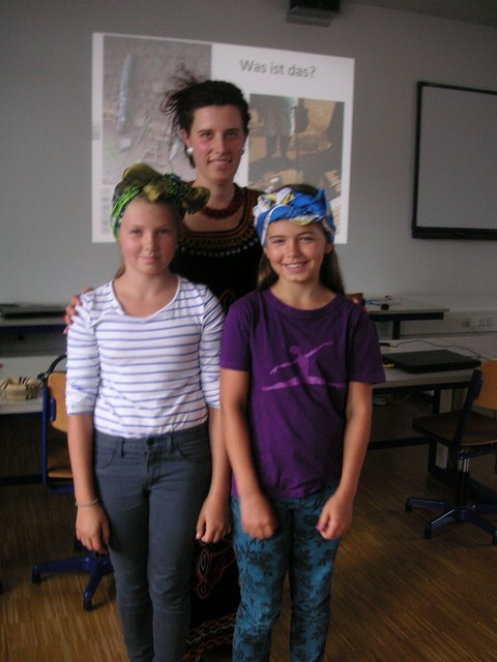 Mitgebrachte Alltagsgegenstände und viele Fotos illustrierten den spannenden Vortrag von Frau Keller. Dabei durfte auch ein afrikanisches Lied nicht fehlen. Singend machten sich die Schülerinnen und Schüler wieder auf den Rückweg ins Klassenzimmer.