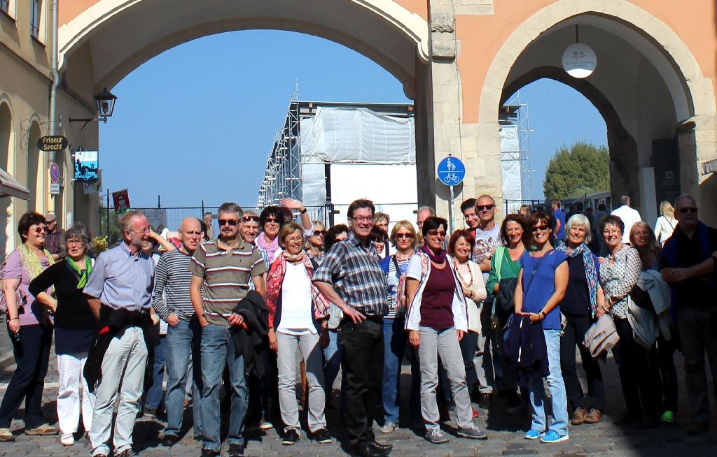 Der letzte Kontakt mit den „Wolperdinger Singers“ aus dem niederbayrischen Abensberg liegt schon einige Jahre zu-rück. Damals war der Chor aus Abensberg zu Gast in Eislingen und absolvierte einen Workshop bei Annette Frank, der Chorleiterin von „Salto Vocale“. Jetzt stand endlich der Gegenbesuch an. Bevor aber das Wiedersehen gefeiert werden konnte, machten die Eislinger Sängerinnen und Sänger zunächst einen Kurzbesuch in Re-gensburg. Und der wird mit Sicherheit allen in Erinnerung bleiben. Denn „Salto Vocale“ wurde ein kurzer Auftritt im Re-gensburger Dom für einen sogenannten „Flash mob“ gestattet: Unter der Leitung von Annette Frank stimmte der Chor „Evening Rise“ an und das löste bei allen Gästen im Dom, wie auch bei den Sän-gern selbst angesichts der fantastischen Akustik des Kirchenraums Gänsehaut aus.