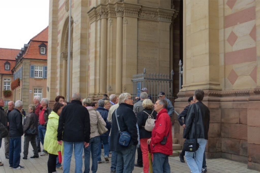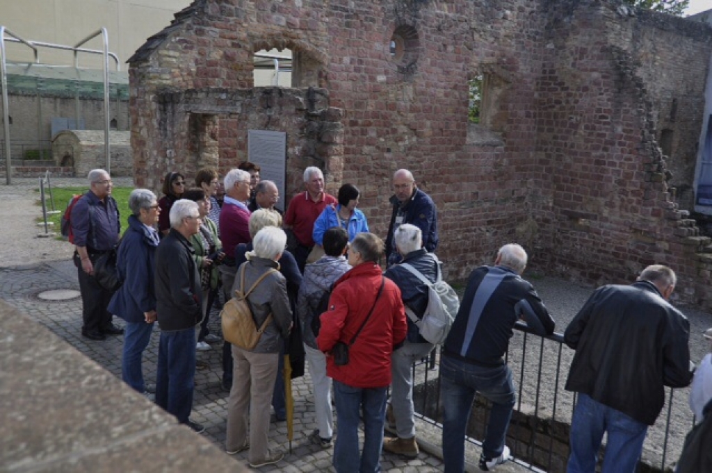 Nach kurzer Weiterfahrt erreichte man die ehemalige Kaiserstadt Speyer mit dem imposanten Dom. Bei einer Stadtführung erfuhren die Reiseteilnehmer viel Wissenswertes über die bewegte Vergangenheit von Speyer. Erwähnenswert ist neben den Sakralbauten noch der Judenhof mit Ritualbad und alter Synagoge. Anschließend schlenderte man bei strahlendem Sonnenschein durch die Maximilianstraße wo viele Cafes im Freien zum Verweilen einluden.