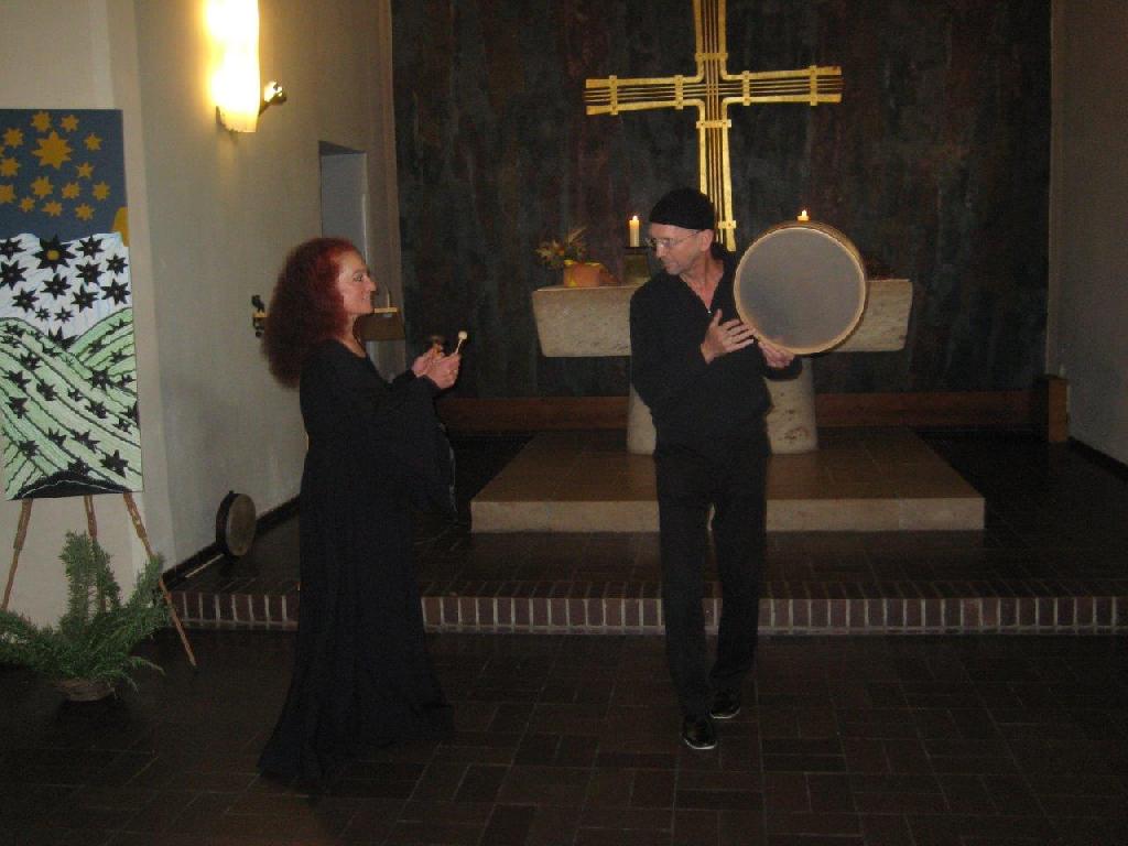 Geistliche Musik, aber auch Texte aus einer längst vergangenen Zeit, in der die berühmte Äbtissin Hildegard von Bingen (1098-1179) wirkte, bildete den Rahmen für das abendliche Konzert, einem Ereignis der ganz anderen Art. Mit den beiden Künstlern des „Ensemble Cosmedin“ Stephanie Haas (Gesang, Rezitation und Perkussion) sowie Christoph Haas (Langhalslaute, Streichpsalter, Glocken, Rahmentrommeln und Perkussion) waren international ausgewiesene Musiker in Eislingen zu Gast, die dem aufmerksam lauschenden Publikum die geistig-geistliche Tiefe dieser ungekünstelten, jedoch kunstvollen Musik auf ihre Weise darzubringen versuchten. So wurde in Musiktiteln wie „Hodie aperuit“ (zu deutsch: „Heute hat sich die Pforte geöffnet, die verschlossen war“) oder „O quam pretiosa“ (zu deutsch: „O, wie kostbar ist da Geheimnis, aus dem Gottes Sohn hervortrat“) die glückliche Verbindung zwischen Hildegard’s Texten und ihrer Musik erlebbar.