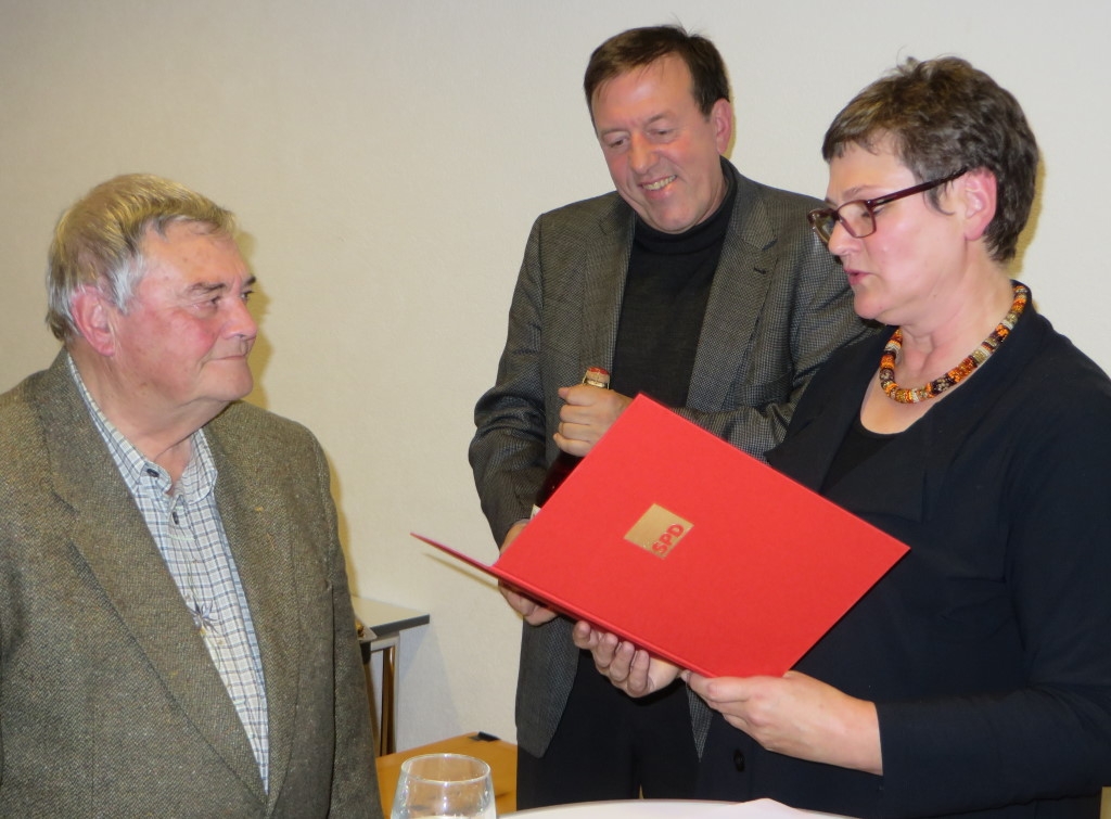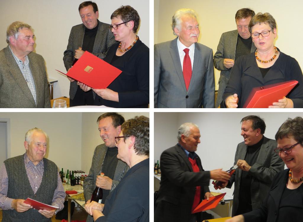 Hans-Ulrich Weidmann konnte zusammen mit Leni Breymaier die von Sigmar Gabriel, Nils Schmid und ihm unterzeichnete Ehrenurkunden und Ehrennadeln übergeben und ein Präsent des Ortsvereins überreichen. Das Engagement und die Parteitreue der vier Eislinger Sozialdemokraten wurde von der Versammlung mit großem Beifall gewürdigt. Der Dank aller Besucher galt Stadträtin Angela Schirling, die im Saal der Markusgemeinde für das leibliche Wohl und beste Organisation gesorgt hatte.