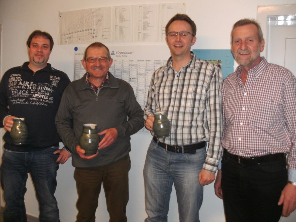 Die handgetöpferten Mostkrüge überreichte den Siegern Wolfgang Blessing, der sich zudem erfreut darüber zeigte, dass bis auf eine Ausnahme alle Möste nach alter Tradition hergestellt wurden. Ausgelesene Obstsorten, reifes Obst und ein ausgewogenes Verhältnis an Äpfeln und Birnen sorgten auch diesmal wieder für süffigen Trinkgenuss.