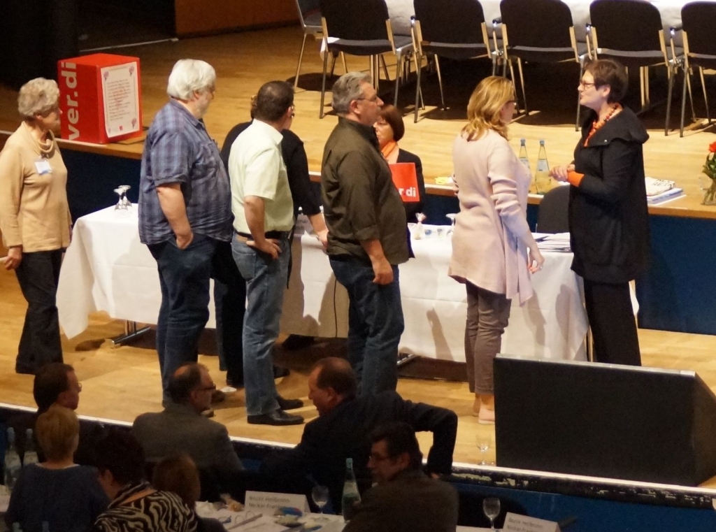 Auf der Landesbezirkskonferenz von ver.di Baden-Württemberg in Ulm ist Leni Breymaier zum dritten Mal nach 2007 und 2011 zur Landesbezirksleiterin gewählt worden. Sie erhielt 96,5 Prozent der abgegebenen Stimmen in geheimer Wahl. In ihrer Rede sagte sie: „Die vergangene Amtszeit war geprägt durch den Kampf für den gesetzlichen Mindestlohn. Jetzt ist er da und hat allen Unkenrufen zum Trotz nur positive Auswirkungen: Bei Gehältern und auch bei Beschäftigung. In den nächsten Jahren wird eine unserer Kernaufgaben die Gestaltung der Digitalisierung sein. Wir Gewerkschaften müssen dafür sorgen, dass die Arbeitsbedingungen nicht vor die Hunde gehen, weil die gnadenlose Preis-Konkurrenz des Internets vielleicht gut für Schnäppchenjäger aber verheerend für Lohnabhängige ist.“ Foto: Sabine Jakoby |