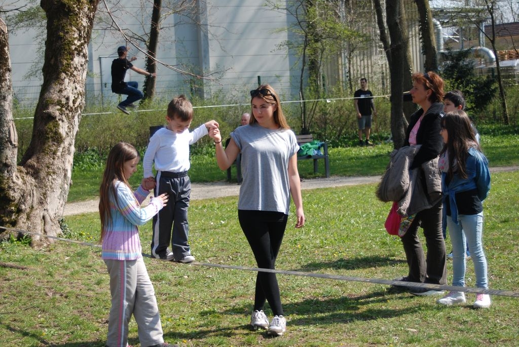 Zur Unterstützung beim waveboarden oder skaten waren wieder die „Skatplace Protectors“, Lorenzo Mastrosimone, Luca Heß, Marcel Seigner und Fabio Mastrasimone vor Ort, die die jüngeren Kindern aktiv unterstützen und sie ermunterten, sich sportlich auszuprobieren. Bereits zum zweiten Mal dabei war der international bekannte Slackliner Tobias Basler und sein Partner, Clemens Schwenzer, die zahlreiche Kinder und Jugendliche zum slacklinen motivierten und am Ende der Veranstaltung für die Besucher selbst noch Weltklassekunst- stücke auf der Slackline vorführten.