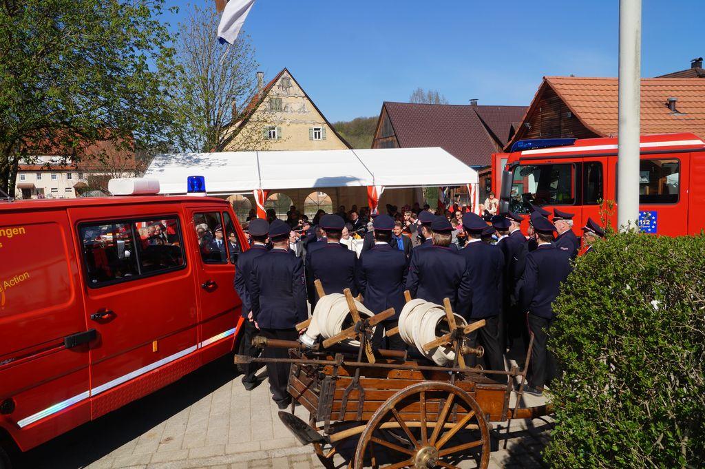 Als besonderen Akt der Unterstützung und Nächstenliebe sehen die beiden Vertreter der Kirchen, Pfarrer Dehlinger und Diakon Riedmüller, den ehrenamtlichen Dienst der Feuerwehrfrauen und -männer an. Sie sind im Auftrag des Herrn unterwegs, so Pfarrer Dehlinger in Anlehnung an den Blues Brothers Leitspruch. Die Fahrzeugweihe durch Diakon Riedmüller schloss die feierliche Fahrzeugweihe ab.