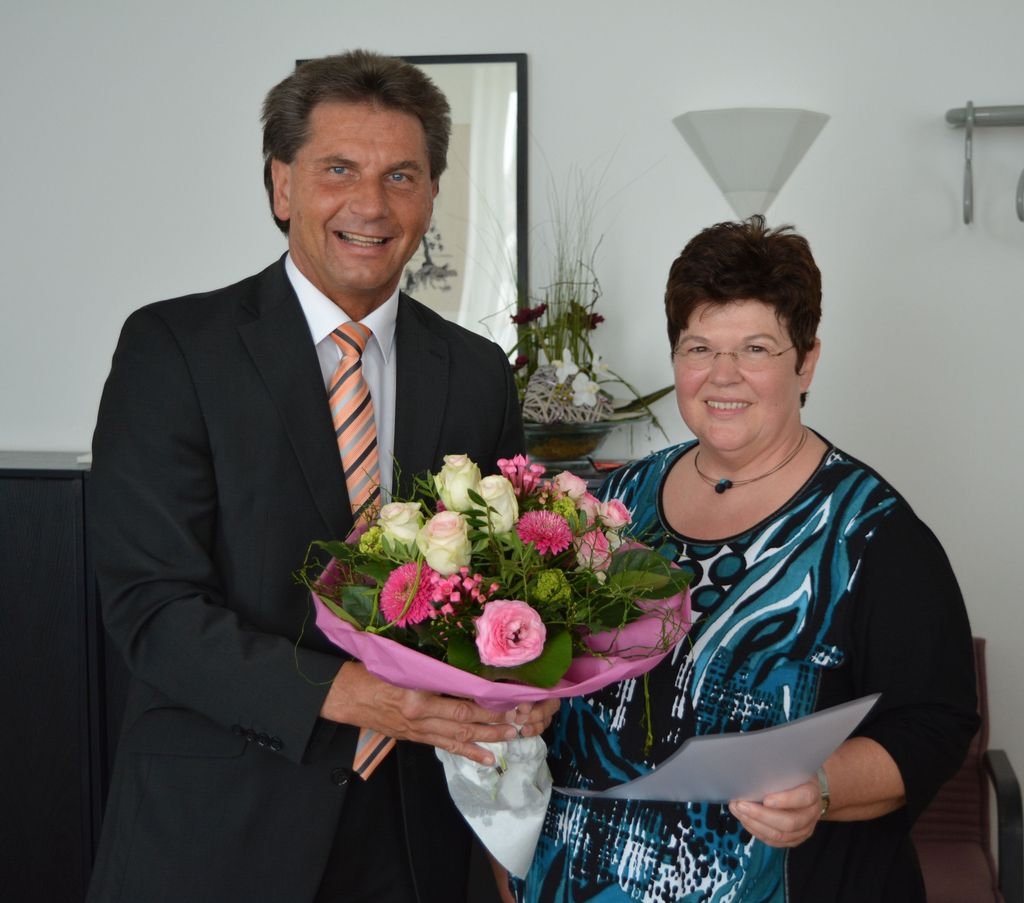 Von Seiten des Personalrates gratulierte Cornelia Gilg herzlich zum Jubiläum und überbrachte ein kulinarisches Geschenk, welches die langjährigen Kolleginnen zusammen genießen möchten. Die Leiterin des Bildungs-, Kultur- und Sportamtes Maria-Luise Schäfer erinnerte sich, wie eingenommen sie bei ihrem ersten Besuch von der liebevollen und dennoch entschlossenen Art der Betreuung war. Sie dankte beiden Mitarbeiterinnen für die stimmige Zusammenarbeit und übermittelte ebenfalls herzliche Glückwünsche.