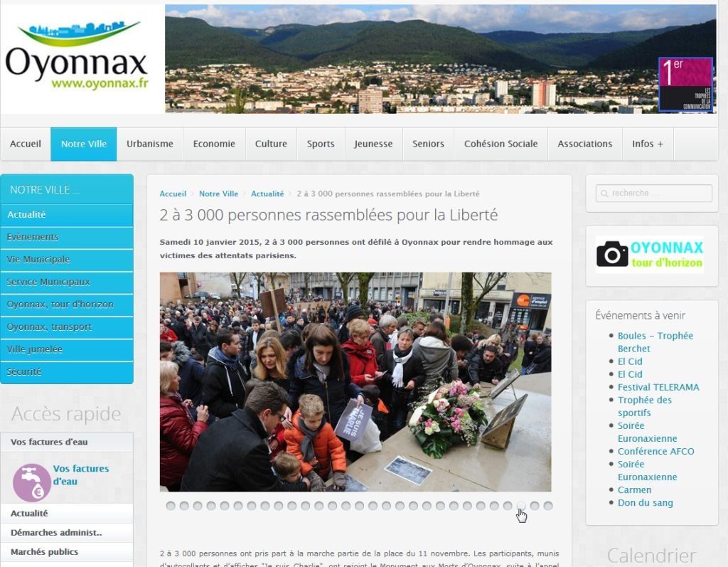 Wie in ganz Frankreich, gingen auch in Oyonnax, der Partnerstadt von Eislingen, tausende auf die Straße, um für die Freiheit und gegen den Terror zu demonstrieren. Auf der Homepage der Stadt Oyonnax kann von der Gedenkveranstaltung eine Bilderserie abgerufen werden. www.oyonnax.fr |