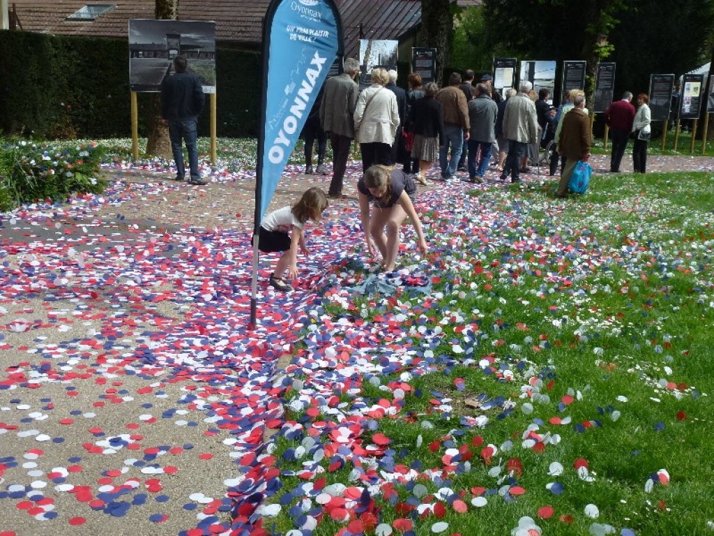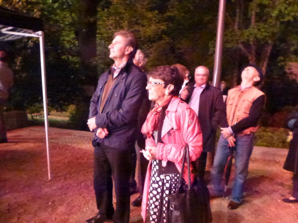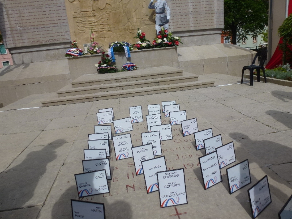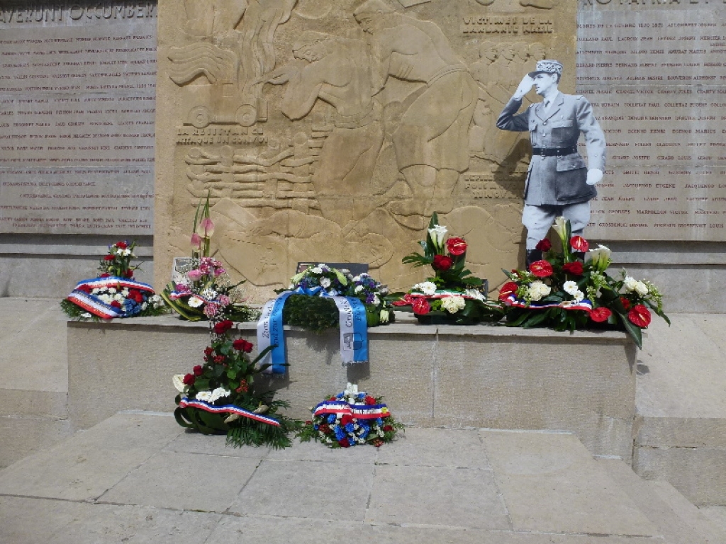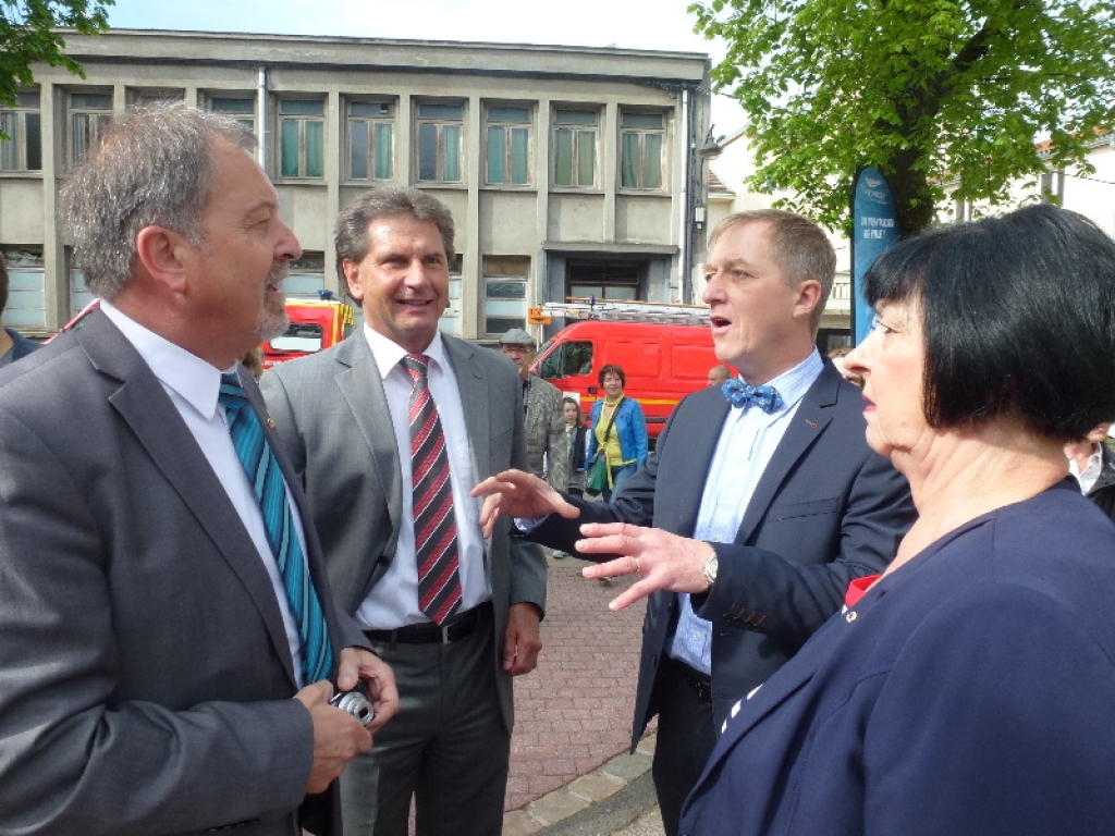 Der Freitag, 8.Mai, und damit Tag der Kapitulation, der Befreiung, stand ganz im Zeichen des offiziellen Gedenkens mit Beiträgen der Politik, des städtischen Orchesters, der Chöre und Gedichten und Liedern der Resistance vor der Kulisse des Kriegerdenkmals. Die französische Kunstflugstaffel flog mehrfach über das Festgelände Streifen in den Farben der Trikolore hinter sich ziehend.