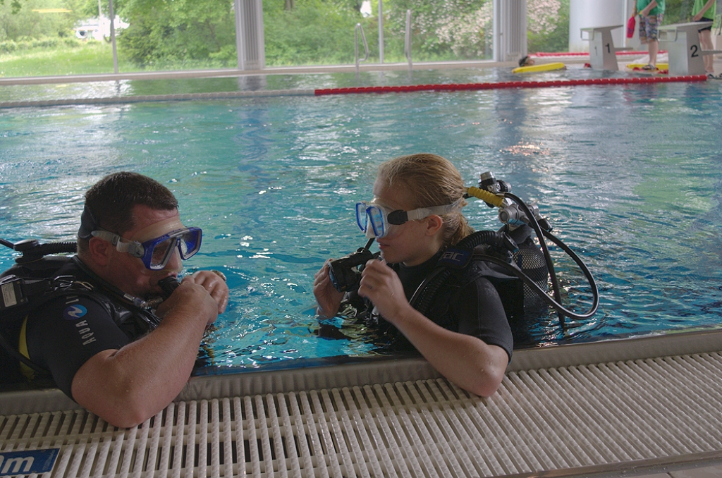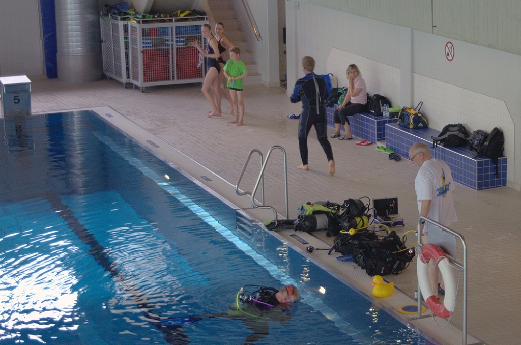 Tauchlehrer und Helfer warteten am Beckenrand auf ihre Schützlinge