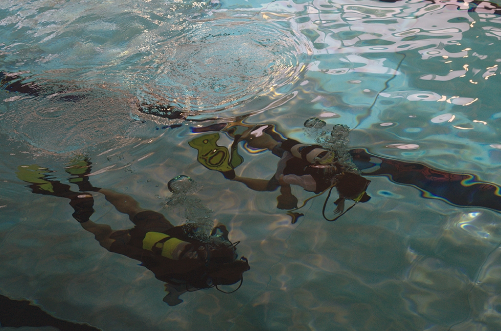 Nach einer Eingewöhnungsphase spielten die Schnuppertaucher mit dem Unterwasserfrisbee und anderem versenktem Spielgerät. Am Schluss des Tauchgangs hatten sich alle Teilnehmer/innen eine Urkunde verdient.