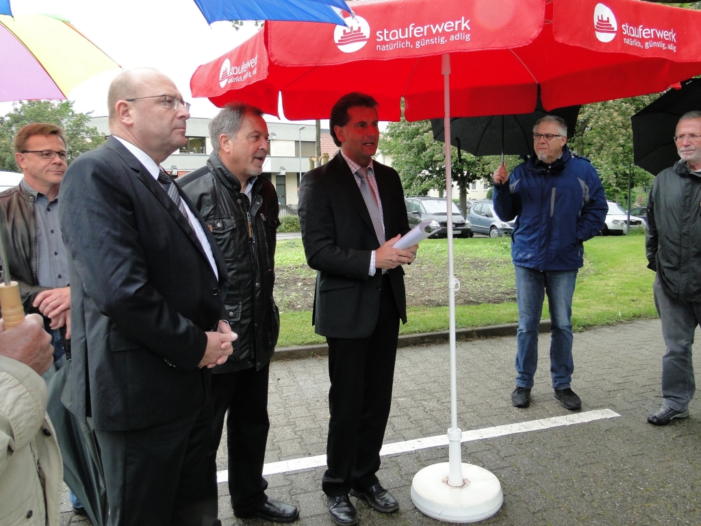 Zur Inbetriebnahme der Tanksäule und des Autos schlossen Oberbürgermeister Klaus Heininger, Bernd Forstreuter von der Firma Heldele und Eberhard Weiler von der Stadtverwaltung den Renault Kangoo symbolisch zu einem ersten Ladevorgang an. Eberhard Weiler war federführend für die Beschaffung und konnte beim Verbund „Get eReady“ einen Zuschuss in Höhe von 500,00 € für den Betrieb des geleasten Autos im ersten Jahr erhalten. „Die Ladezeit beträgt ca. 3 bis 4 Stunden und das Fahrzeug soll für Dienstreisen, aber auch für kleinere Transporte genutzt werden“, berichtet Eberhard Weiler.