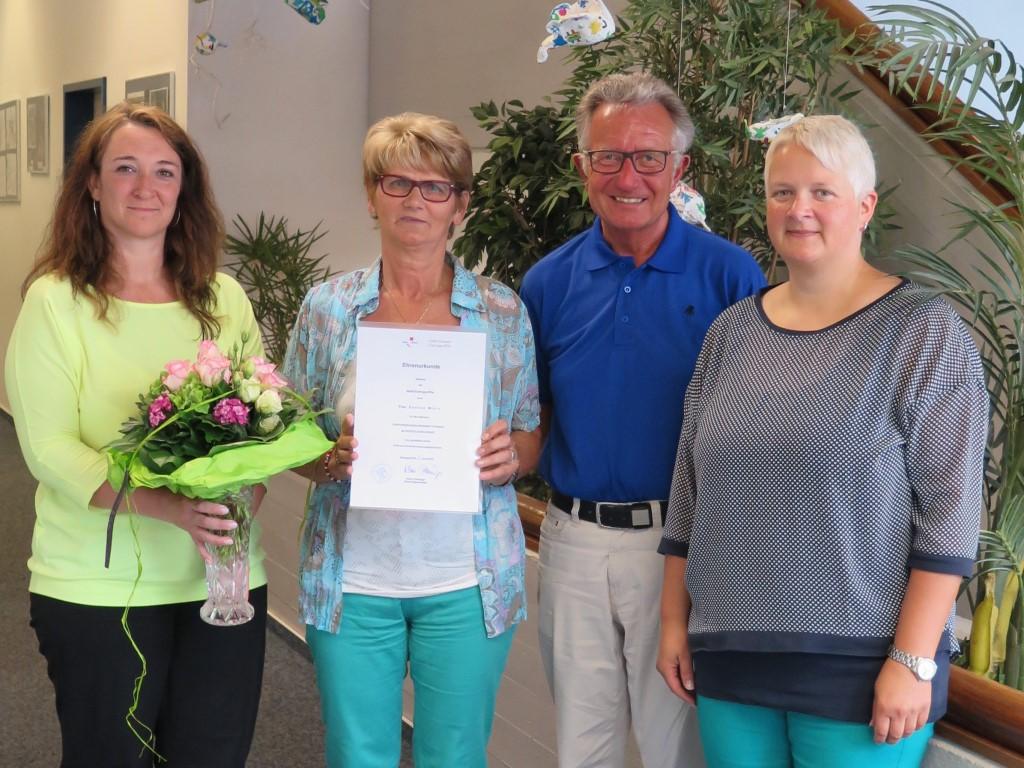Sonja Mebert überbrachte herzliche Grüße von Oberbürgermeister Klaus Heininger und dankte mit einem Präsent und einer Urkunde für die zuverlässige und sorgfältige Arbeit während des vergangenen Vierteljahrhunderts.