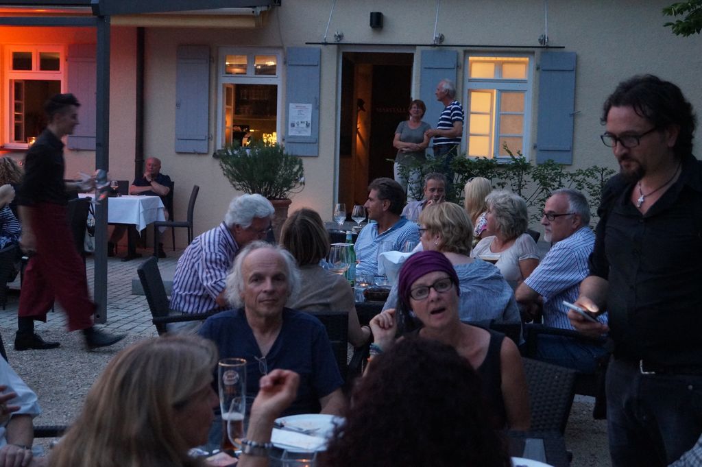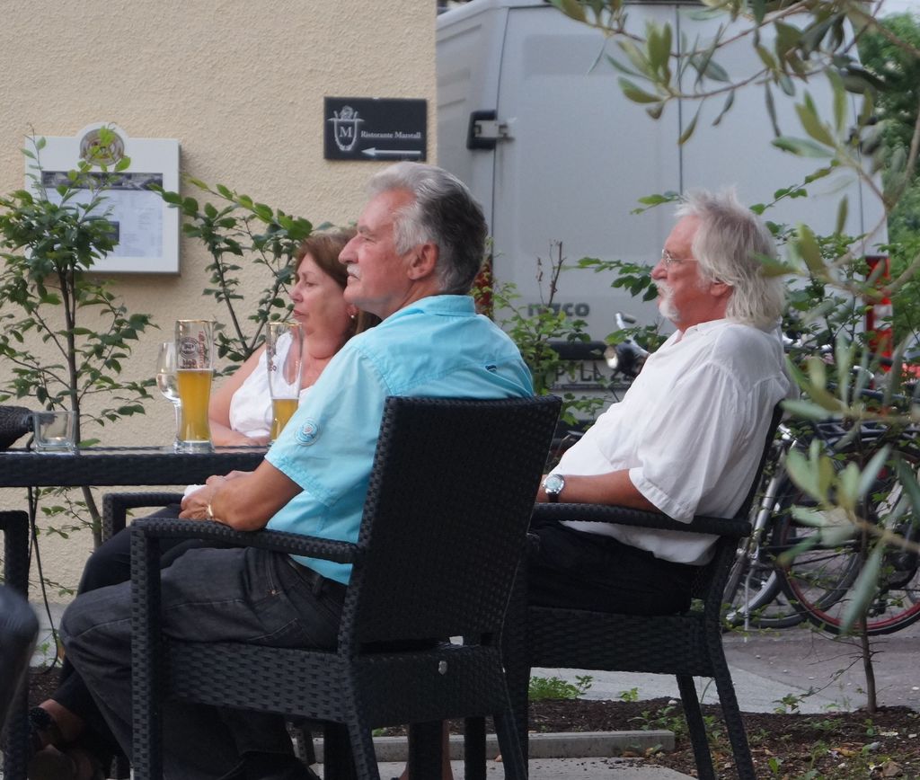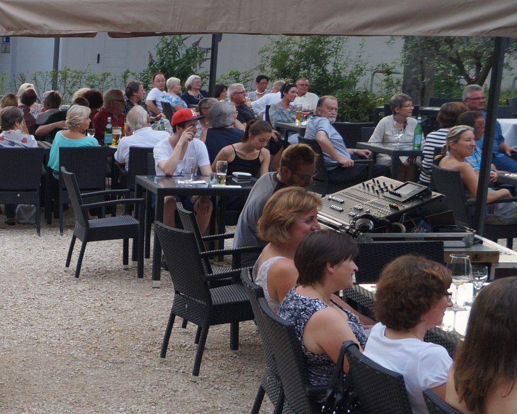 Warum nicht den 30ten Geburtstag feiern? so Paul Kottmann der Vorsitzende des Eislinger Kunstvereins in seiner Begrüßung im gut gefüllten Garten des Eislinger Szenelokals Marstall. Und das Geburtstagskind hatte wirklich Glück mit dem Wetter. Die gut 200 Gäste der Feier konnten in dieser lauen Sommernacht bis hart an die Sperrstunde das Konzert von 'The Mufuti Four' aus Augsburg genießen. |