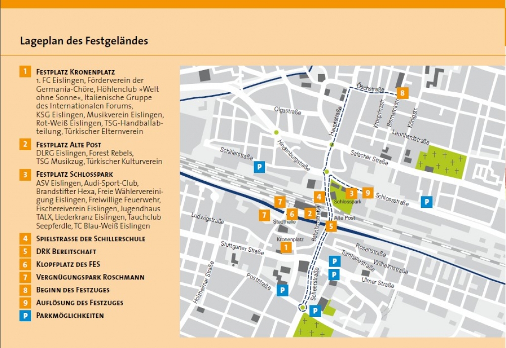 19:30 Uhr mit dem Fassanstich von Oberbürgermeister Klaus Heininger im Schlosspark. Gute Musik und die Bewirtung durch die Eislinger Vereine sorgen für gute Stimmung auf allen Festplätzen Schlosspark, Alte Post und Kronenplatz.