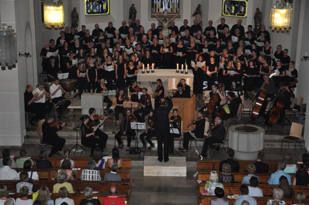 Nun kann jedenfalls die sehr sachkundige Interpretation von Kirchenmusikdirektor Klaus Rothaupt lobend erwähnt werden. Er führte – wie in den letzten Jahren – durch ein fordernd-glänzendes Dirigat. Im beschwingt-tänzerischen Eingangschor „Erschallet, ihr Lieder, erklinget, ihr Saiten“ steuerte der Künstler Rothaupt das mit Vokalisten und Instrumentalisten besetzte Schiff durch’s bewegte Gewässer der Bach’schen Da-Capo-Musik und die als Projektchor vereinten Kirchenchöre der Christus-, Luther- und St. Markus-Liebfrauen-Kirche mit einigen Gastsänger/-innen einschließlich – erstmalig – den Mittel- und Oberstufenchor des hiesigen Erich-Kästner-Gymnasiums.
