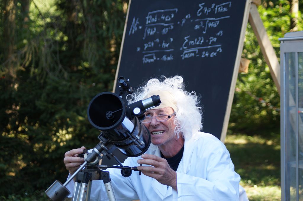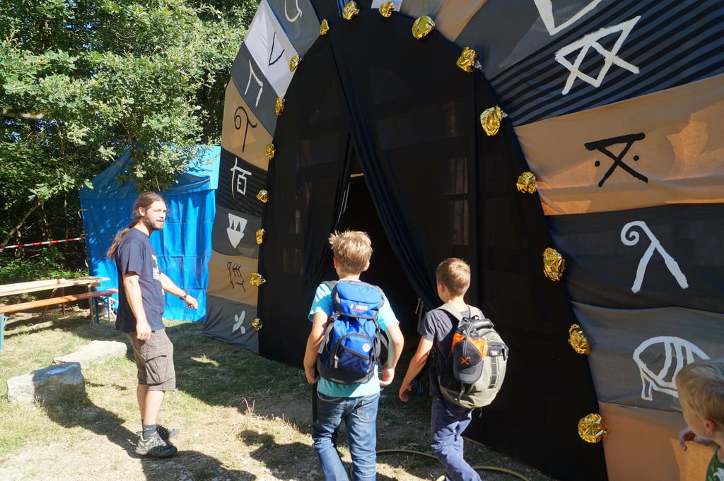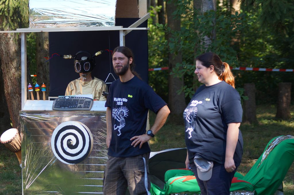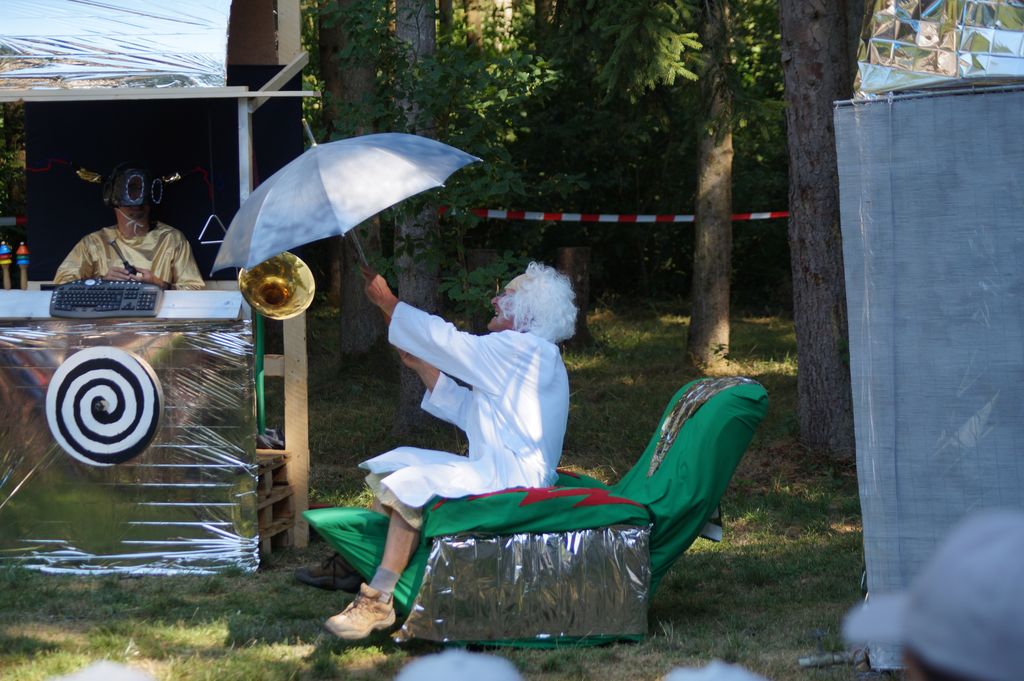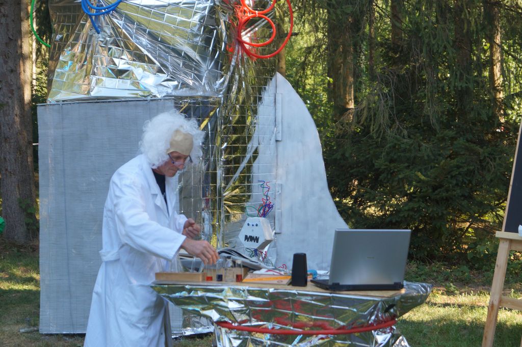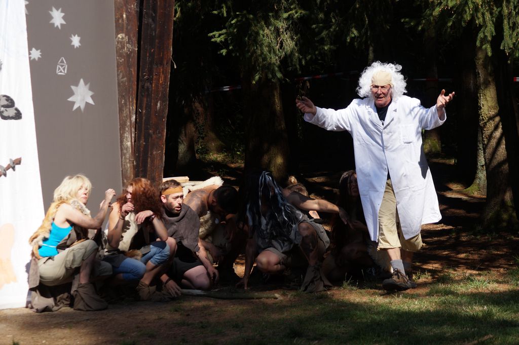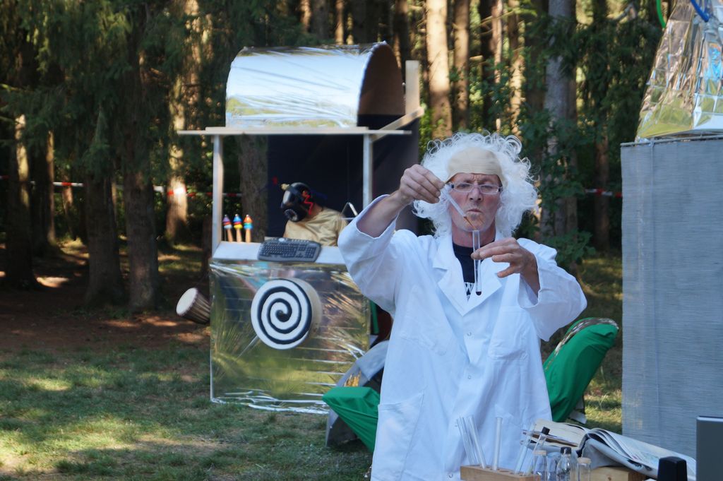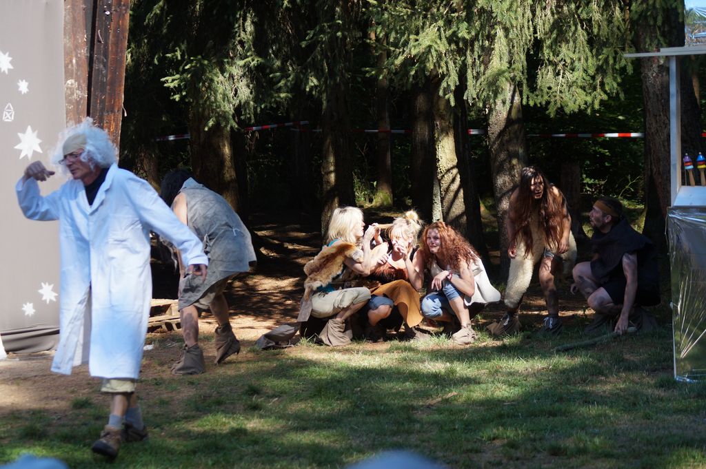 Siebzig Kinder konnten es kaum erwarten, was dieses Jahr auf sie im Eislinger Täle zu kommt. Bis die letzten Teilnehmerinnen und Teilnehmer der Waldwunderwoche den Pfadfinderplatz durch den Zeittunnel betreten hatten konnten Sie den 'Zeitmaschinenprofessor' beim forschen beobachten. Mit der Zeitmaschine ab in die Steinzeit |