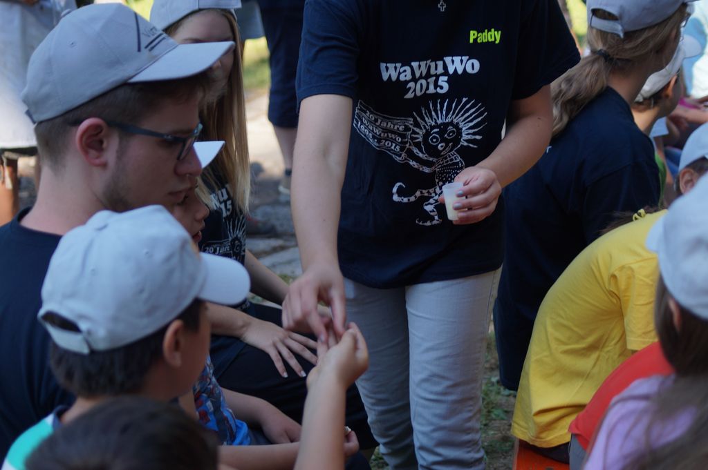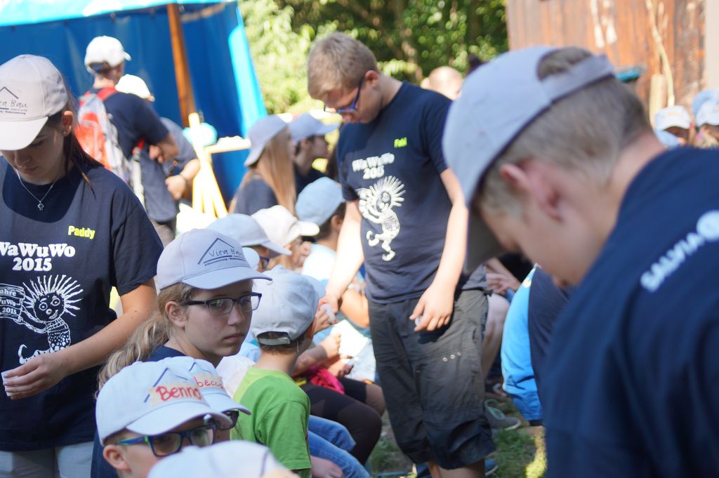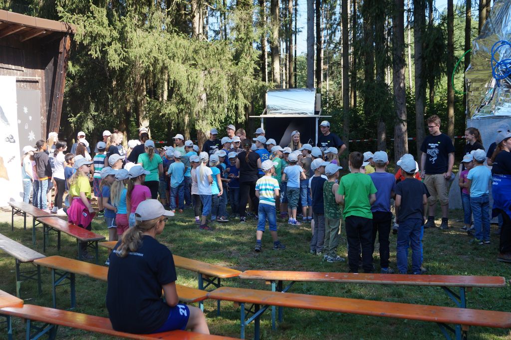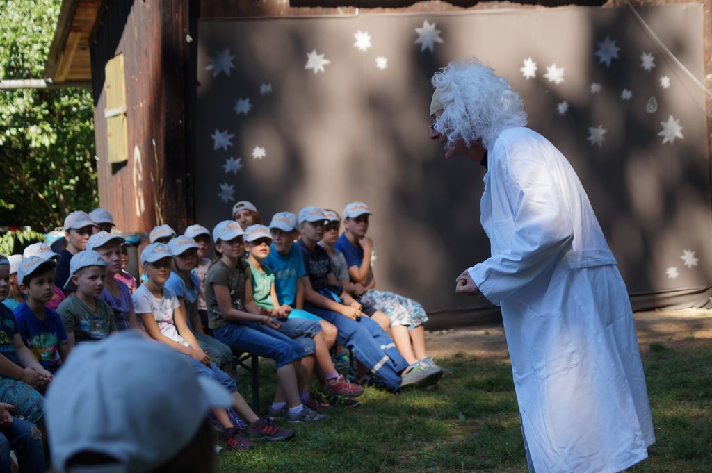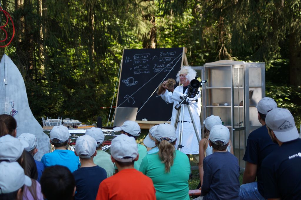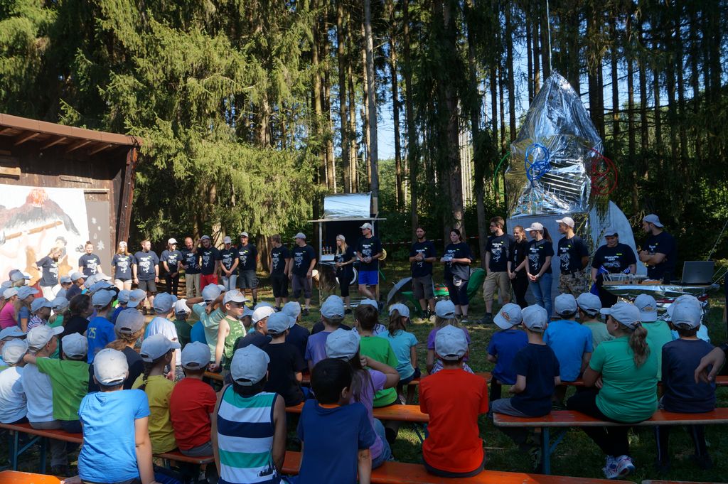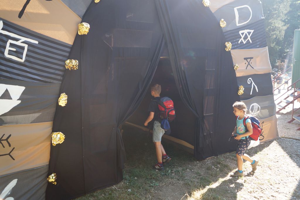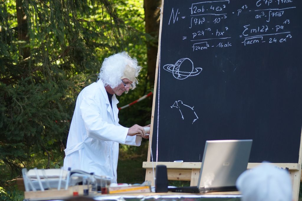 Siebzig Kinder konnten es kaum erwarten, was dieses Jahr auf sie im Eislinger Täle zu kommt. Bis die letzten Teilnehmerinnen und Teilnehmer der Waldwunderwoche den Pfadfinderplatz durch den Zeittunnel betreten hatten konnten Sie den 'Zeitmaschinenprofessor' beim forschen beobachten. Mit der Zeitmaschine ab in die Steinzeit |