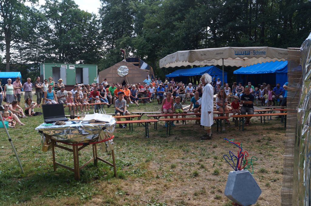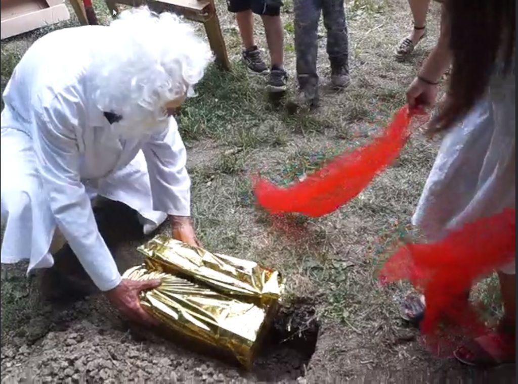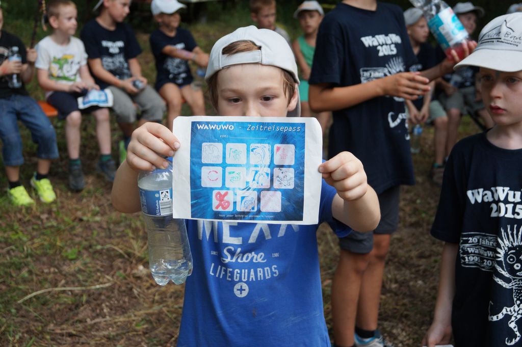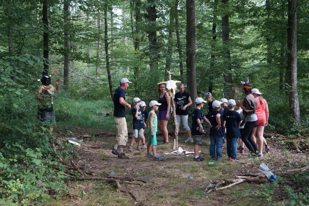 Am letzten Tag des ersten Abschnittes der Waldwunderwoche in Eislingen konnten die Eltern und Großeltern der teilnehmenden Kinder live mit erleben, wie sich die Aktivitäten der Ferienwoche gelohnt haben. Es wurden alle 20 Gegenstände gefunden und konnten in einer goldenen Kiste für die nächsten 20 Jahre versteckt werden. Somit ist die Waldwunderwoche für die nächsten Jahre sicher vor schwarzen Löchern und die Zeitreise hat ein gutes Ende gefunden. |