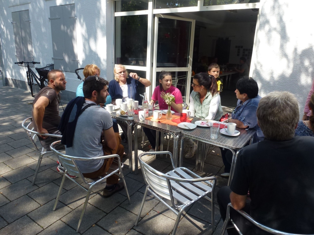 Café Asyl startet bei Bilderbuchwetter im TaLX Alle sind zufrieden 25.8.2015 - Peter Ritz