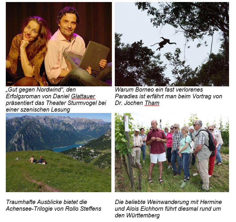 Ein breites Spektrum weisen die Einzelveranstaltungen im Bereich Geschichte-Gesellschaft-Wissen auf. Heimatkundliches bieten die Führung durch den Eislinger Obstsortenlehrpfad, eine Besichtigung des Eislinger Wasserwerks und ein Herbstspaziergang in den Reben um den Württemberg.