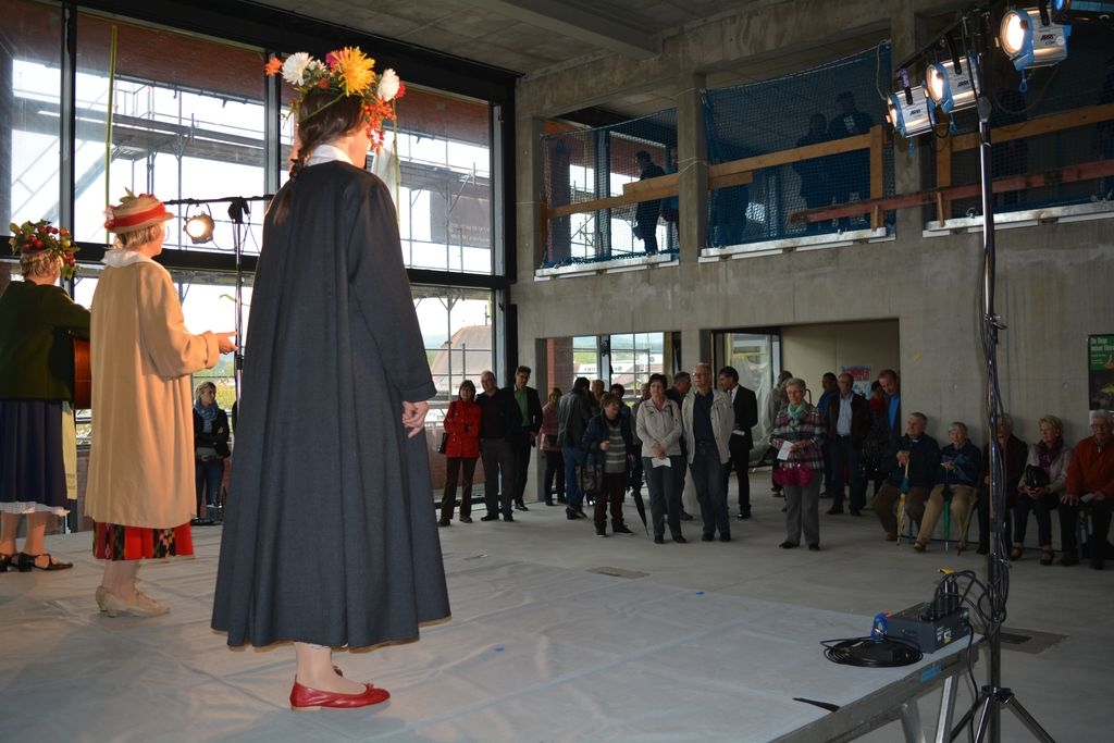 Im dritten Obergeschoss ist das Dienstzimmer des Oberbürgermeisters angesiedelt. Schräg gegenüber tagen im nächsten Frühjahr die 22 Stadträte im großen Sitzungsaal. Dort präsentierte „Dein Theater“ aus Stuttgart an diesem Nachmittag eine komplett andere Art von Unterhaltung. Mit dem „Eislinger Jodler“ und Anekdoten aus der Stadt sorgten die weiblichen Akteure für regelrechte Begeisterung beim Publikum. Das speziell auf Eislingen abgestimmte Programm kam sogar so gut an, dass von den Zuschauern um eine Wiederauflage im nächsten Jahr gebeten wurde.
