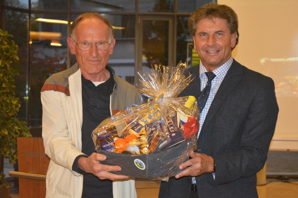 OB Klaus Heininger gratuliert Gerhard Kneifel herzlichzu seltenen Auszeichnung für 125 maliges Blutspenden