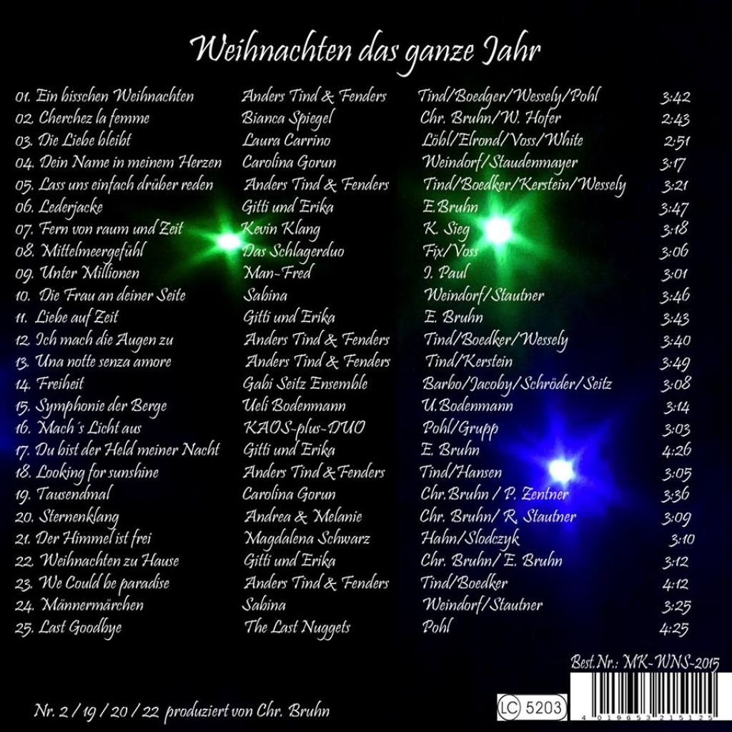 Wie wir bereits berichteten, hat die Eislingerin Magdalena Schwarz mit dem Titel 'Der Himmel ist frei' den vierten Platz beim Schlagerwettbewerb 'Stauferkrone' im Oktober 2015 erreicht. Mit diesem Lied, komponiert von Hahn/Slodczyk ist jetzt eine Doppel-CD erschienen. Insgesamt sind auf der CD mit dem Titel 'Weihnachten das ganze Jahr' 25 Songs von 14 Künstlern vertreten. |