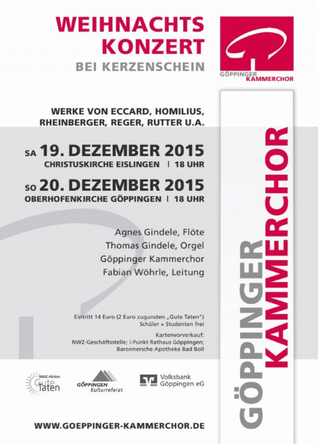 Samstag, 19. Dezember 2015, 18 Uhr, Christuskirche Eislingen
