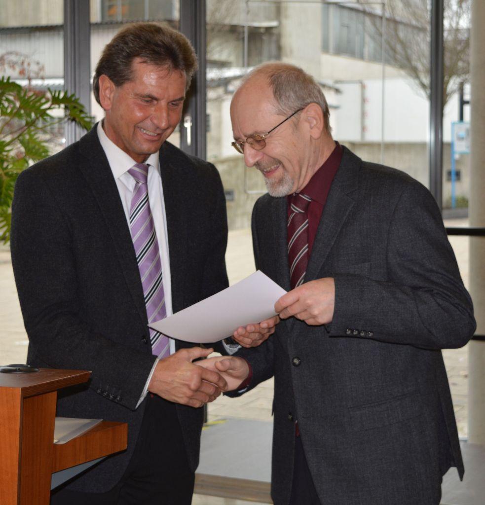 Der Vorsitzende des Personalrates, Ralf Greuter, dankte Dieter Kauderer für dessen langjährige Tätigkeit in der Personalvertretung, viele Jahre davon als deren Vorsitzender. Während dieser Zeit setzte er sich mit Wahrhaftigkeit und viel Kraft für die Kolleginnen und Kollegen ein.