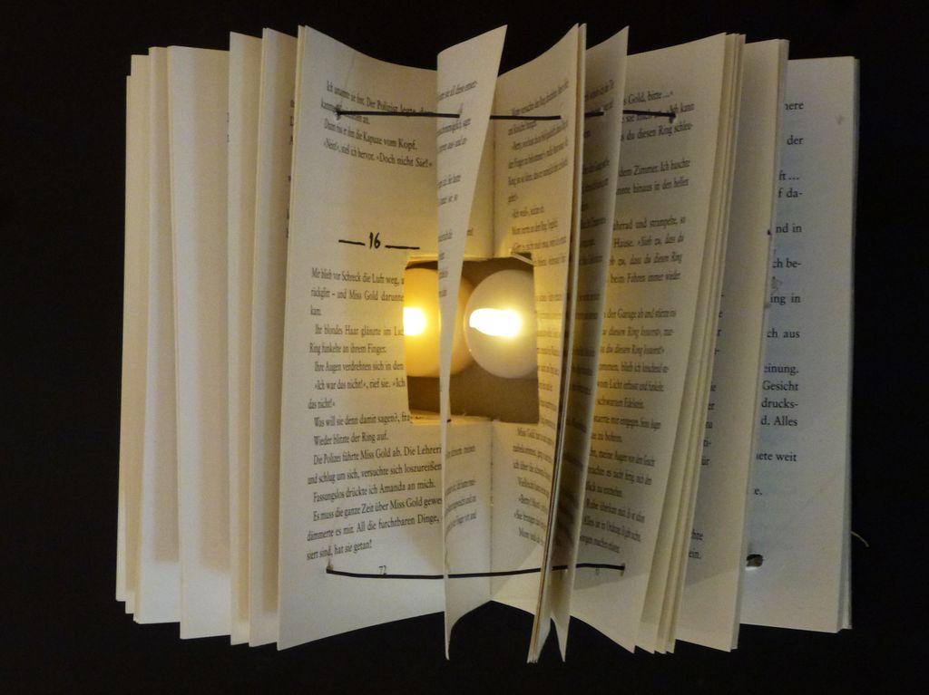 „Wir erleben hier Licht für eine dunkle Jahreszeit!“ mit diesen Worten eröffnete die Leiterin der Stadtbücherei Sarah Ripp am vergangenen Mittwoch eine Ausstellung mit Schülerarbeiten im Lesecáfe der Stadtbücherei. Musikalisch begleitet wurde die Ausstellungseröffnung von Melih Yersen am Klavier. Ausstellende sind Schülerinnen und Schüler der Klasse 10a des Erich Kästner Gymnasiums Eislingen, die sich unter der Anleitung von Studienreferendarin Charlotte Paulus über einen längeren Zeitraum im Kunstunterricht mit dem Thema Nachhaltigkeit beschäftigt haben und damit, wie dieses Thema in Zusammenhang mit den Gestaltungsabsichten des Bereichs Design gebracht werden kann. „Aspekte wie Form, Gestalt und Funktion waren dabei wichtige Richtlinien“, berichtete der Schüler Alexander Teodorescu in seiner pointierten, in die Ausstellung einführenden Rede. Es entstanden im Laufe der Zeit aus Abfallmaterialien Prototypen von Leuchtobjekten, die in der Stadtbücherei Eislingen nun der Öffentlichkeit zugänglich sind. Keine Lampe gleicht dabei der anderen - 29 verschiedene Exemplare zeigen, wie unterschiedlich Lampen gestaltet und Lichtströme und Schatten gelenkt werden können. Aber auch, wie unterschiedlich Zugänge, Herangehensweisen, Absichten und Konzeptionen der Schüler sein können. In der Dunkelheit erstrahlen die Lampen in ihrer Schönheit und man hat das Gefühl in ein Lampengeschäft einzutreten. Spotartige Lampen stehen neben atmosphärischen Lichtspendern und Schattenwerfern. Plastikbecher und -löffel fanden bei der Umsetzung ebenso Verwendung wie leere Toffifee-Verpackungen und Plastikröhrchen. Eben alles was mit Produkten unserer Wegwerfgesellschaft zu tun und nun einen Prozess des Upcyclings durchlaufen hat.