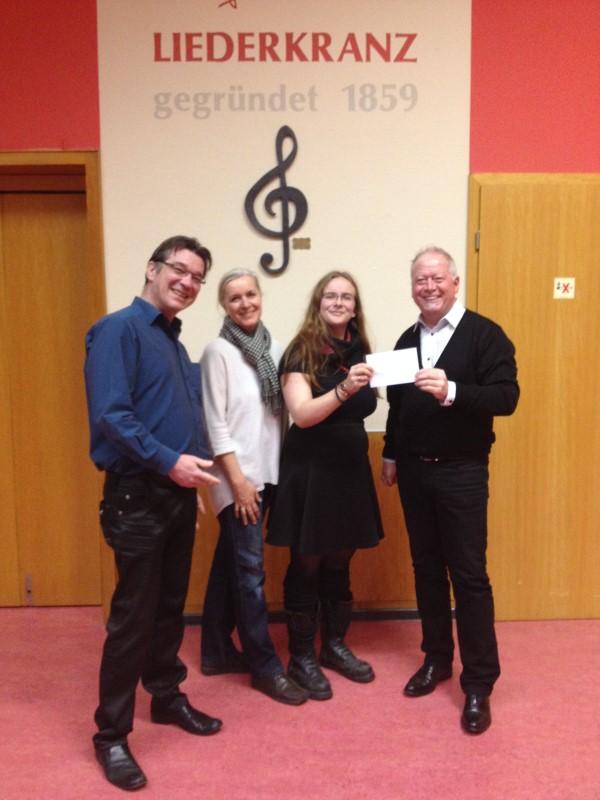 Mit 450 Euro wurde die Arbeit des „Cafe Asyl“ der Stadt Eislingen unterstützt, bei dem sich wöchentlich in Eislingen lebende Flüchtlinge treffen und dabei von Ehrenamtlichen unterstützt und betreut werden. Das Geld wurde durch Chormitglieder in der vergangenen Woche Bürgermeister Herbert Fitterling übergeben (unser Foto)