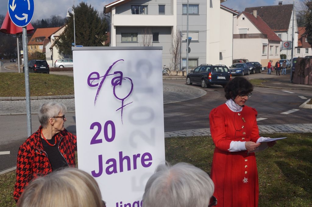 Eislinger Frauenaktion eröffnet Jubiläum mit einer Inszenierung am Kreisverkehr