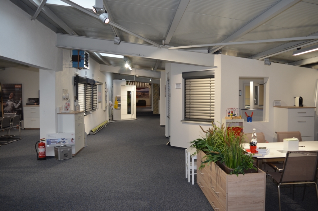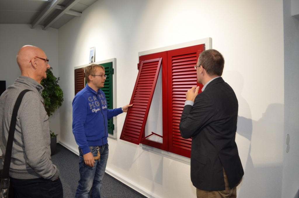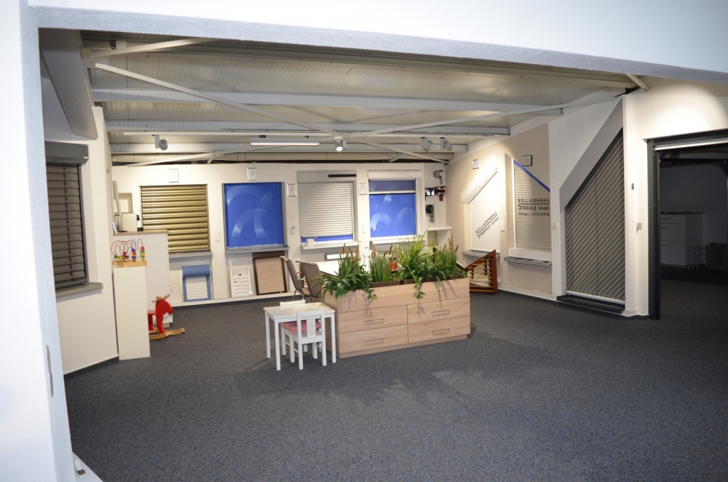 Im neuen, erweiterten Ausstellungsraum berichtete Geschäftsführer Michael Strähle über die Firmengeschichte und die Entwicklung des Unternehmens. Das Sortiment beschränkt sich mittlerweile nicht mehr, wie das Logo es vermuten lässt, auf den Rollladenbau.