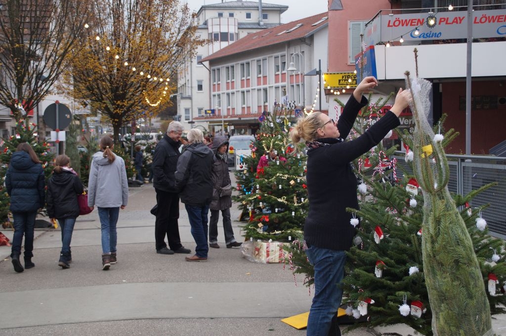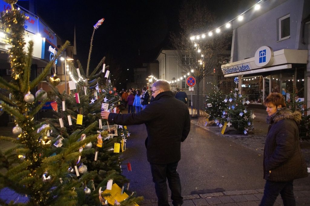 44 Weihnachtsbäume, gesponsert vom Eislinger Gewerbetreibenden, bilden im Rahmen des Eislinger Weihnachtsmarkts auf der Bahnhofstraße eine festlich geschmückte Weihnachtsbaumallee. Den kreativen Schmuck haben Schulklassen, Kindergärten und Vereine übernommen. Bis Sonntag-Abend am ersten Advent kann am Stand 29 'Offensive Weihnachtsmarkt' der schönste Baum von den Besucherinnen und Besuchern gewählt werden. Hier die beteiligten Baumschmücker und deren Sponsoren: