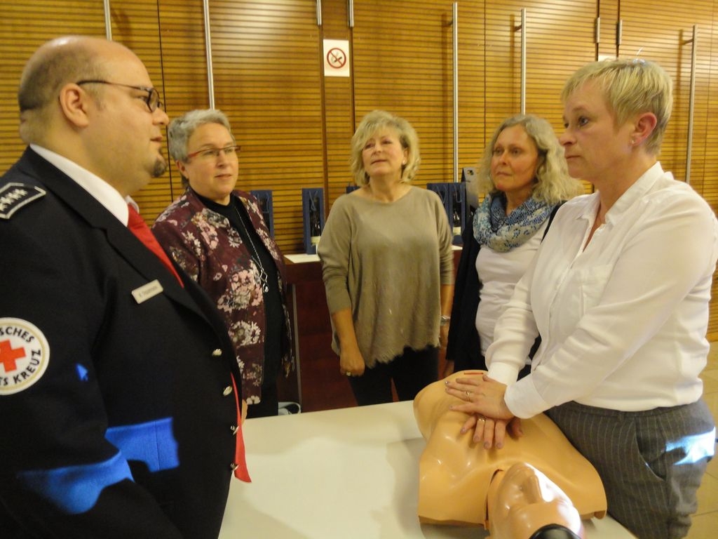 Mit einem Filmbeitrag zur Verwendung der Spenderblutes und der Demonstration einer Reanimation an einer mitgebrachten Puppe gestalteten der Vorsitzende des DRK-Ortsvereins Thomas Ruckh und Bereitschaftsleiter Rüdiger Trautmann das Rahmenprogramm des Abends. Thomas Ruckh verwies dabei auf die Tatsache, dass es leider bei weitem immer noch nicht ausreicht, den Bedarf an Blut zu decken. Insgesamt spenden derzeit nur 3% der Bevölkerung. Um die Versorgung mit Blutpräparaten langfristig auf sichere Beine zu stellen, müssten aber ca. 6% der Bevölkerung regelmäßig Dauerspender sein. Trotzdem freute es den Vertreter des Eislinger Ortsvereins, dass in Eislingen dennoch eine vergleichsweise hohe Zahl bei den örtlichen Blutspendeaktionen in der Stadthalle geleistet wurden: „Mit 1.342 Blutspenden haben wir dieses Jahr unseren Beitrag in Eislingen geleistet“, unterstrich er das gute Ergebnis und bedankte sich bei dieser Gelegenheit bei OB Klaus Heininger für das hervorragende partnerschaftliche Verhältnis zur Stadt.