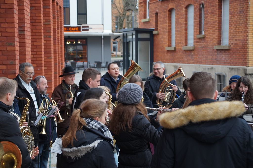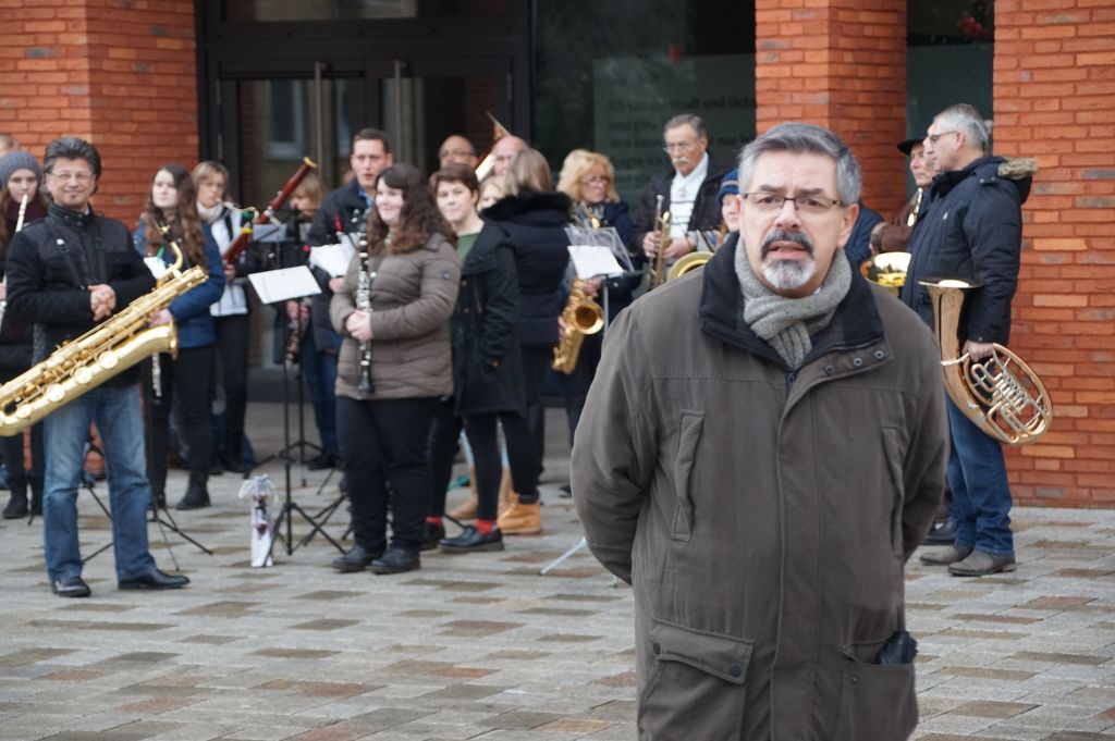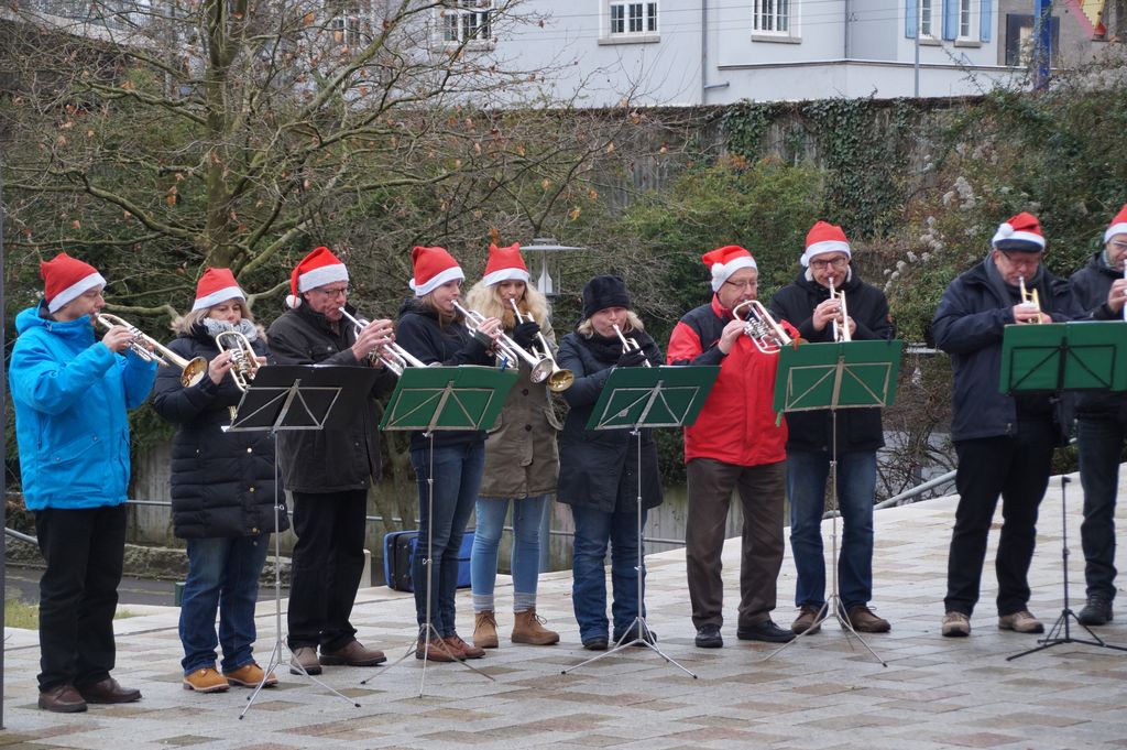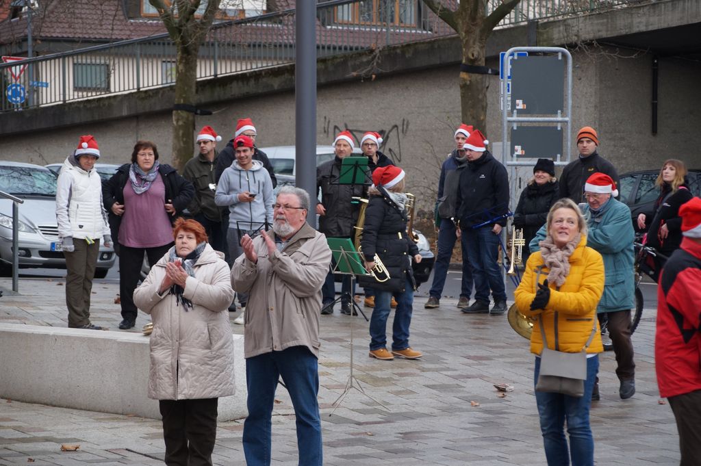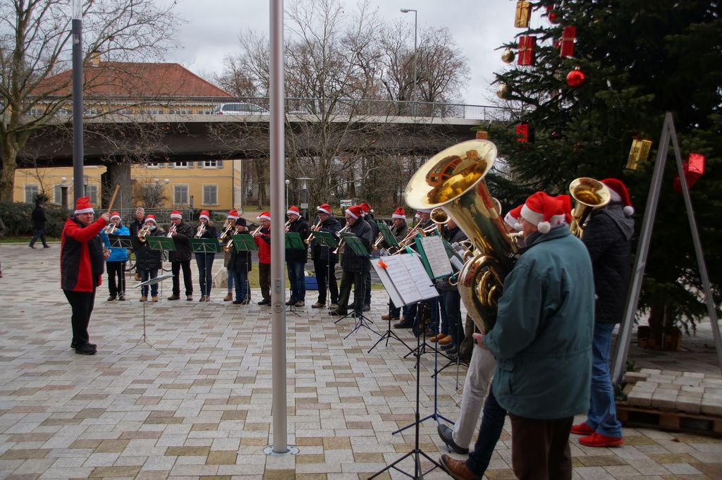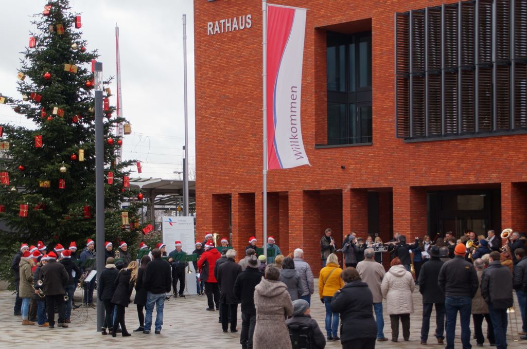 'Wachablösung' der Weihnachtsmusikanten am neuen Rathaus Musikverein und Posaunenchor stimmen zum Weihnachtsfest ein 24.12.2016 - Hans-Ulrich Weidmann