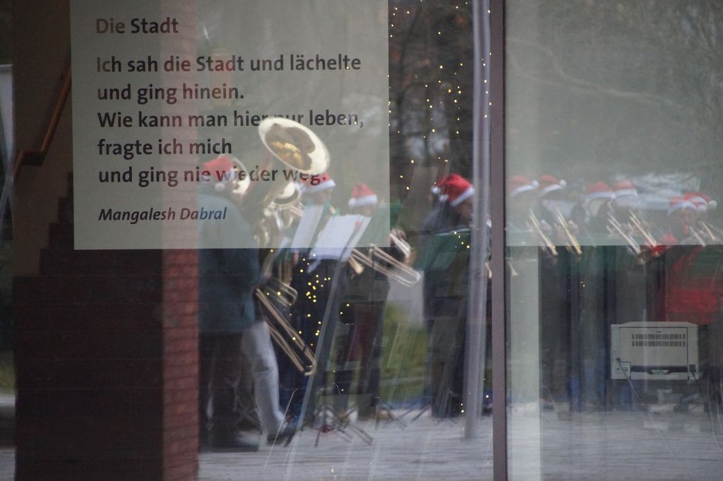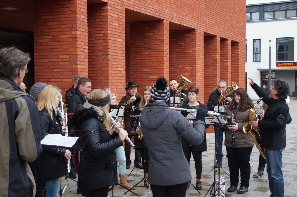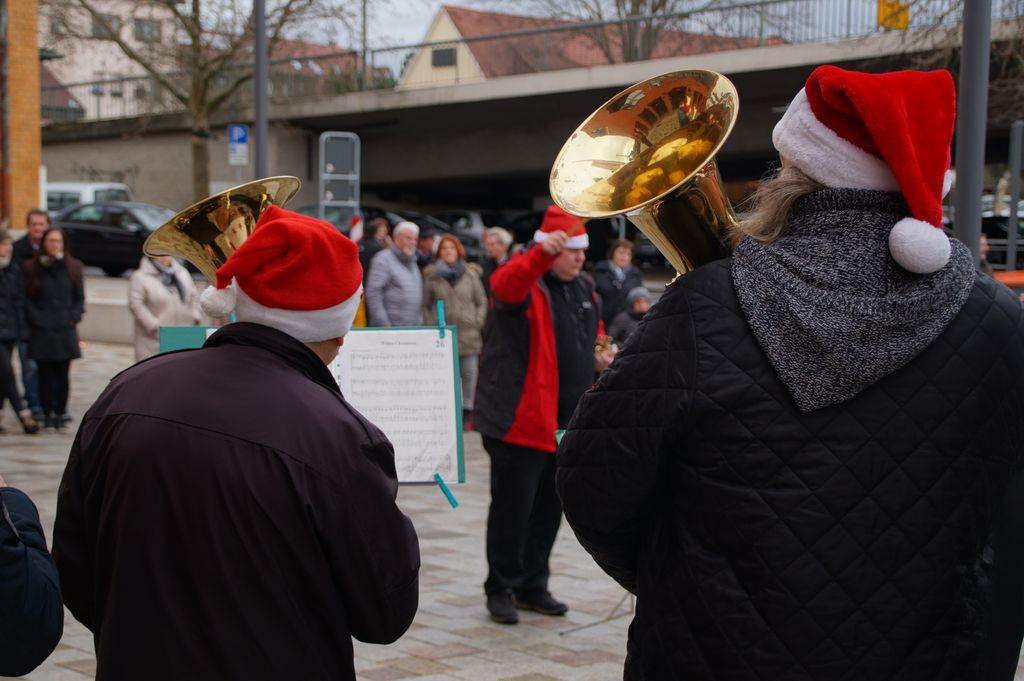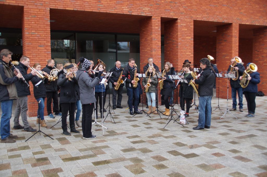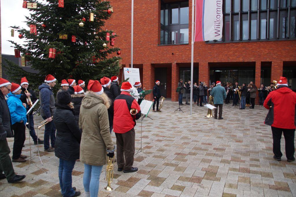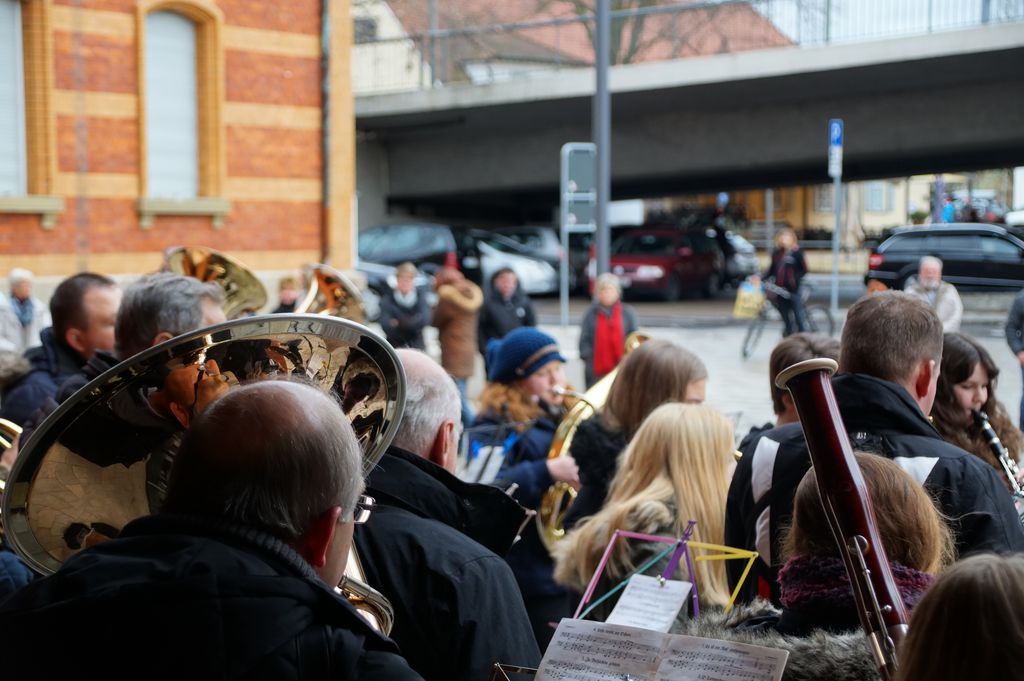 'Wachablösung' der Weihnachtsmusikanten am neuen Rathaus Musikverein und Posaunenchor stimmen zum Weihnachtsfest ein 24.12.2016 - Hans-Ulrich Weidmann