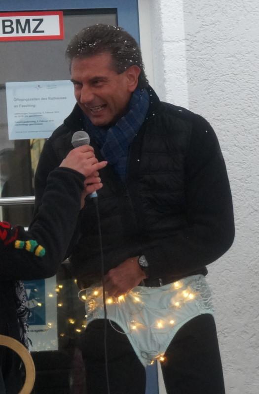 Dann gab es noch neue Unterwäsche für den Rathauschef: In Anspielung auf die durch das Internet weltweit bekannte Weihnachtsbeleuchtung bekam OB Heininger einen beleuchteten Schlüpfer angezogen.